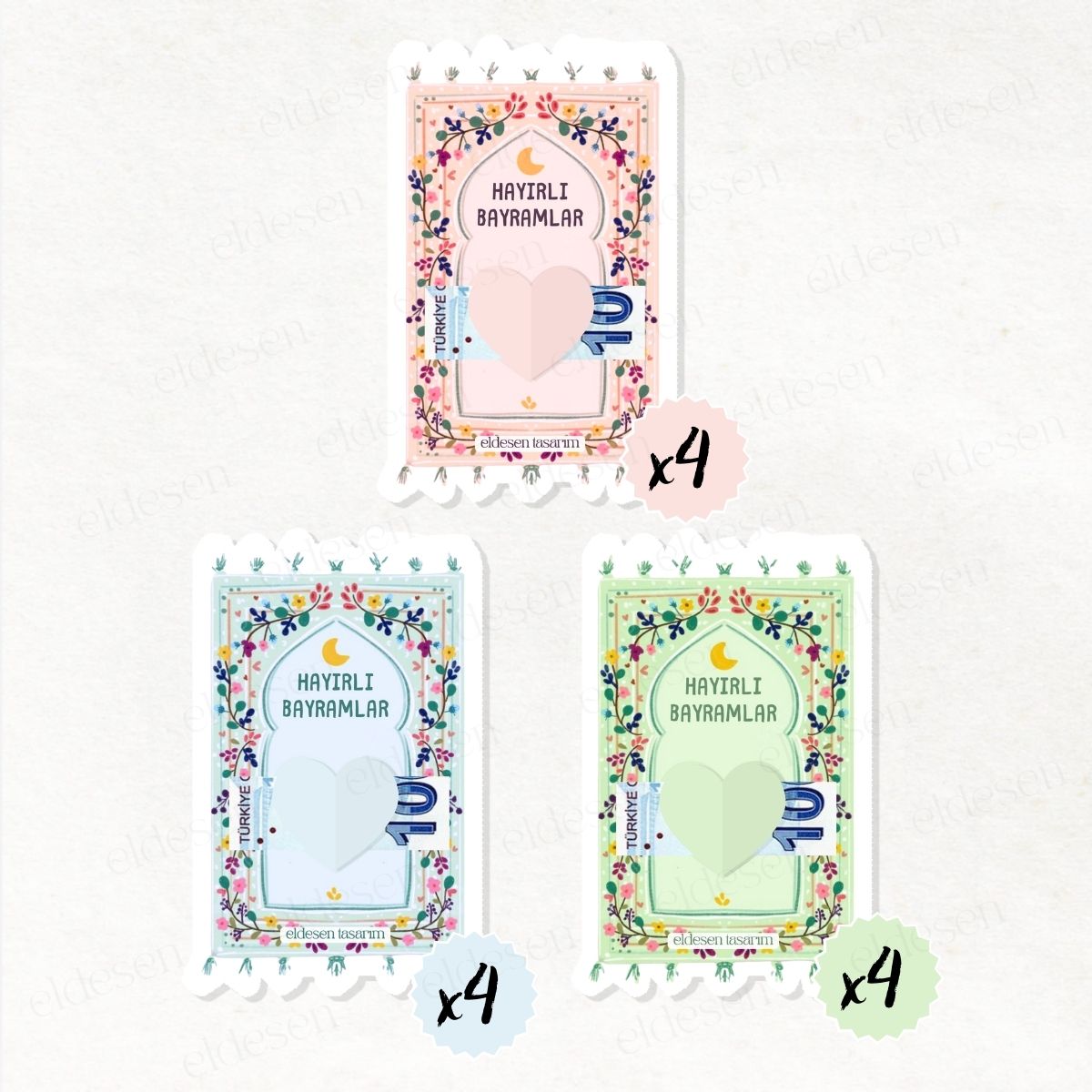 12 Adet Bayram Tebrik ve Harçlık Kartı