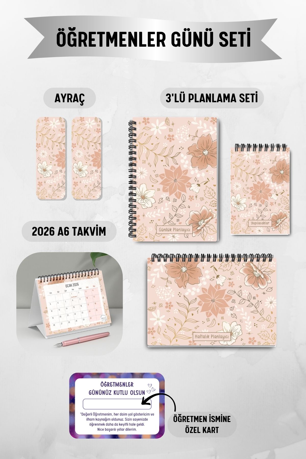 Altın Çiçek 3'lü Planlama Seti ve A6 Takvim / Öğretmenler Günü