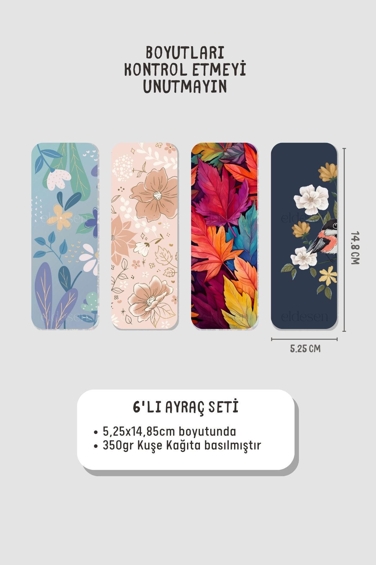Ayraç Seti 5.2 x14.8 cm boyutundadır 350gr kuşe kağıda basılmıştır