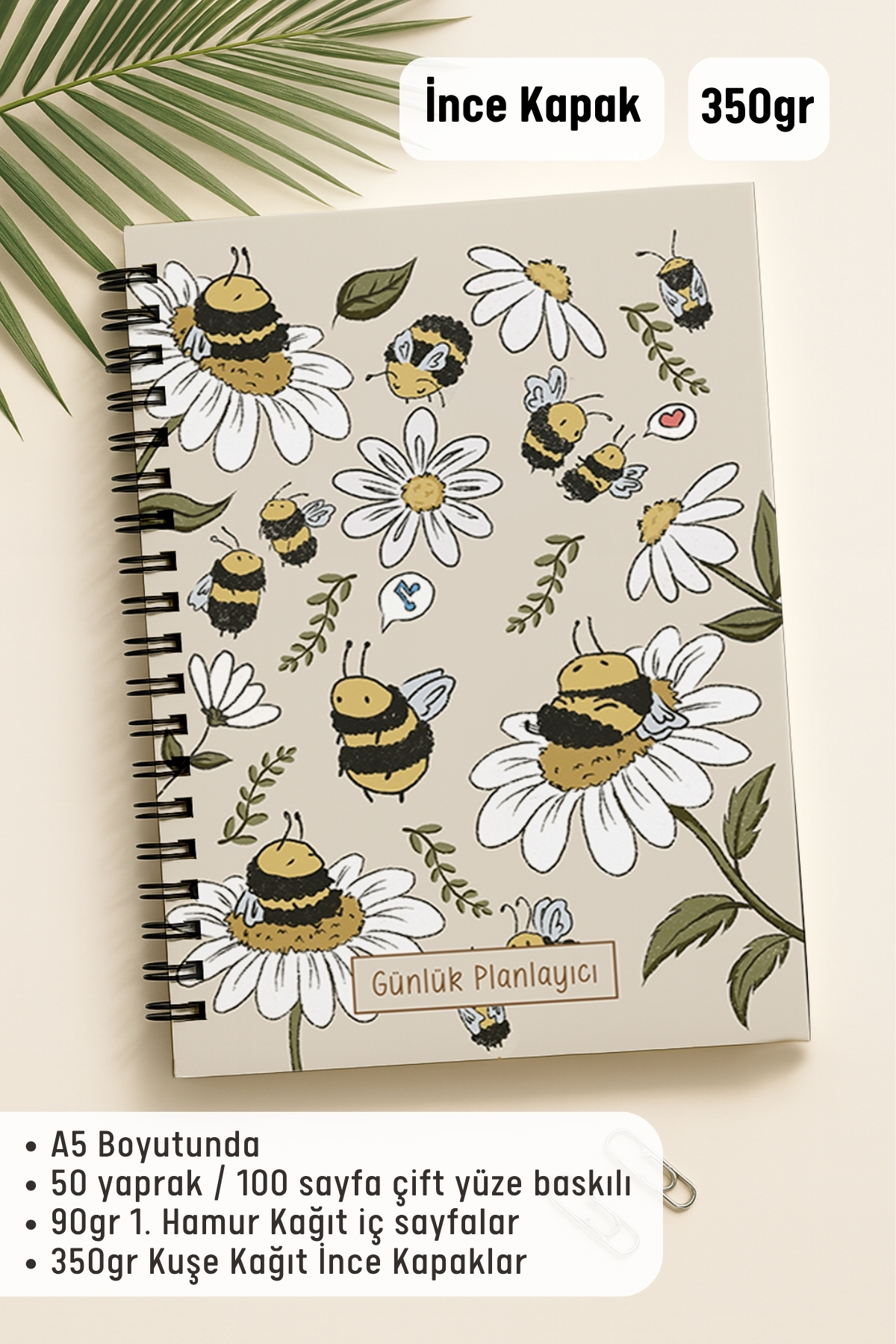 ▪️A5 (16 x 21 cm) ▪️50 yaprak / 100 Sayfa Çift Yüze Baskılı ▪️90gr 1. Hamur Kağıt İç Sayfalar ▪️350gr Kuşe Kağıt İnce Kapaklar