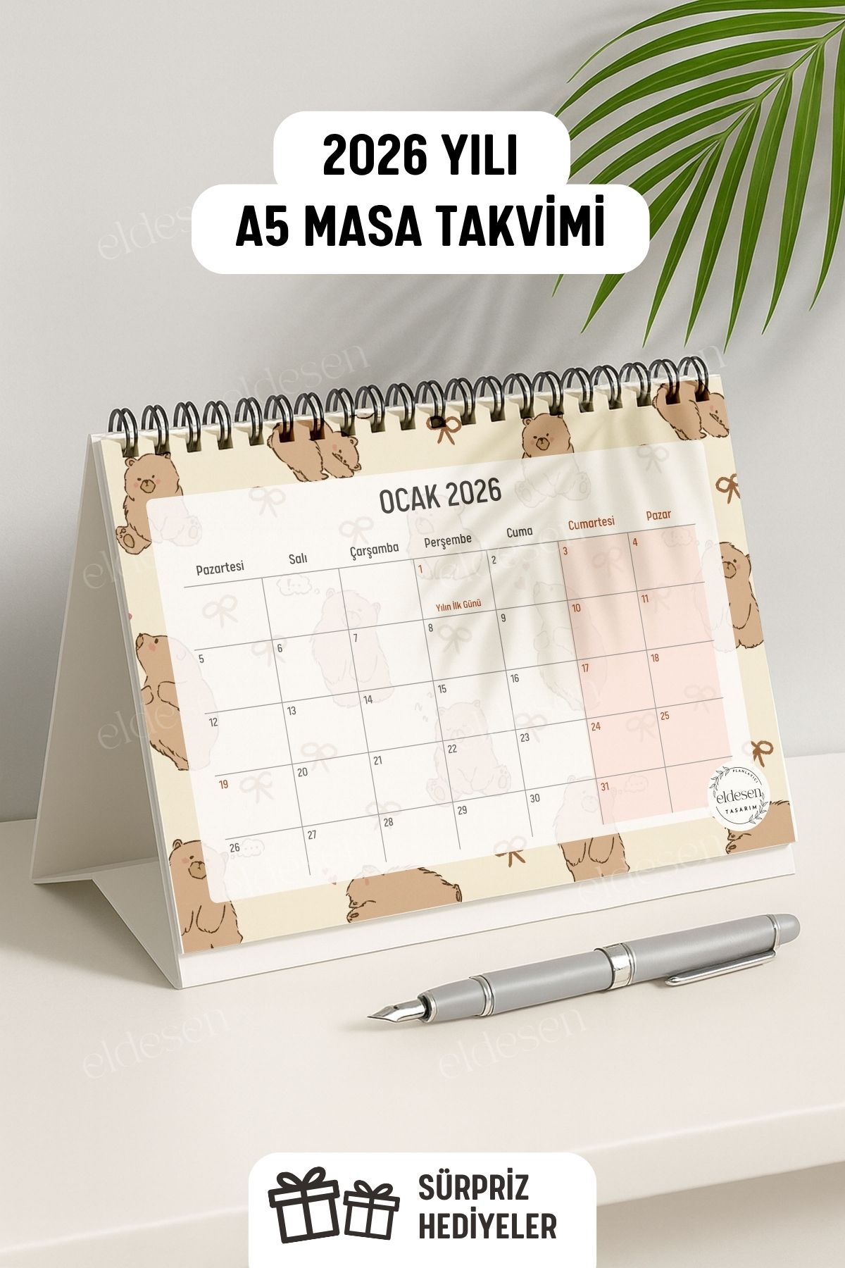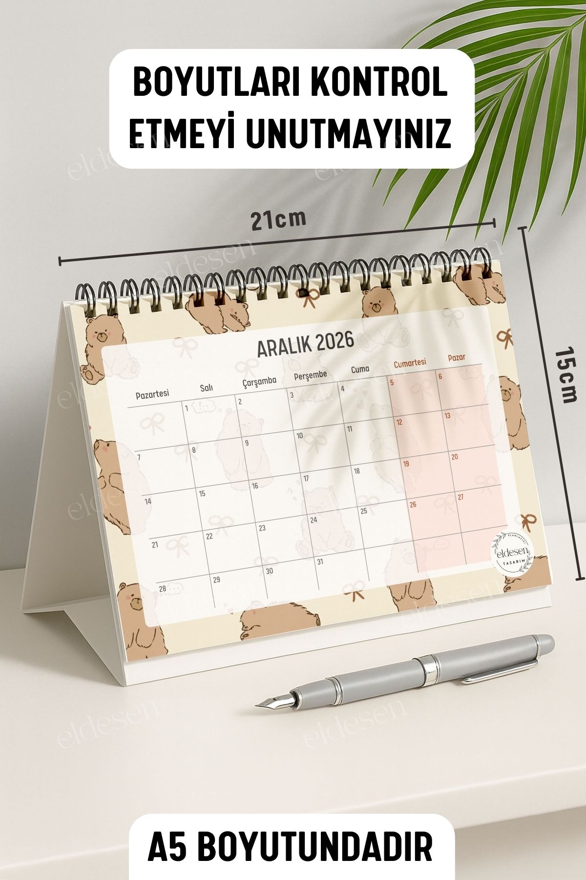 Ayıcık 2026 Yılı Aylık Masa Takvimi Spiralli A5