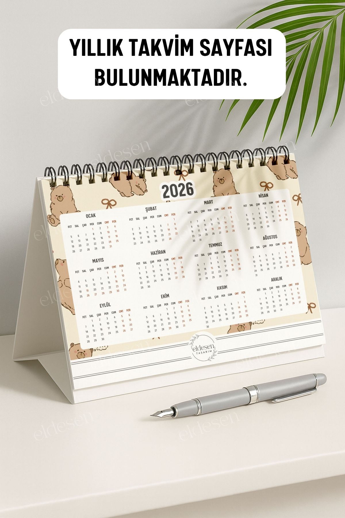 2026 yılı için özel olarak tasarlanmış, A5 boyutunda (21x16cm) büyük boy masa takvimi.