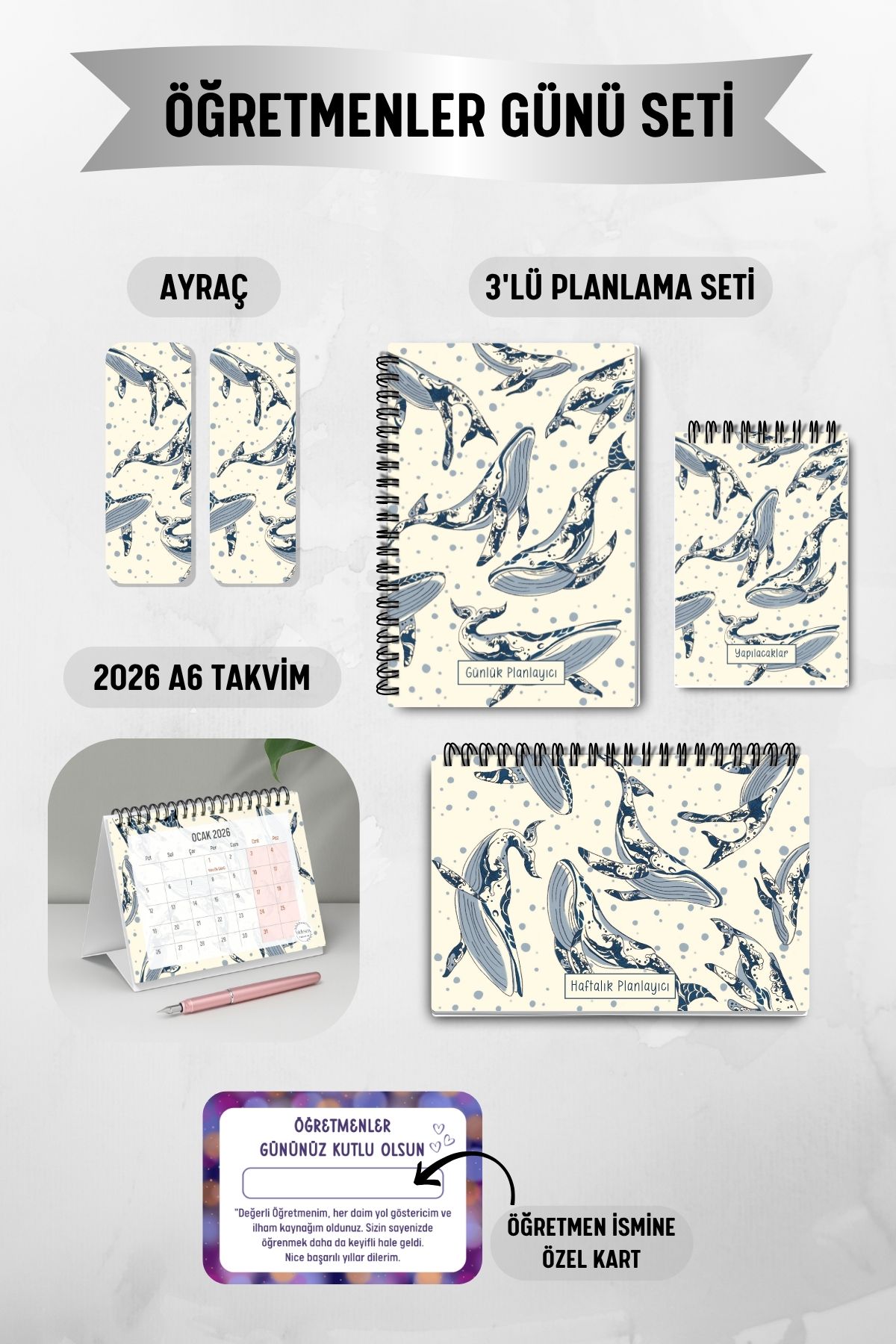 Balinalar 3'lü Planlama Seti ve A6 Takvim / Öğretmenler Günü