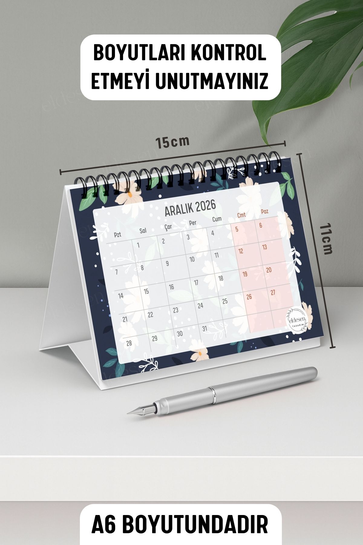 2026 yılı için özel olarak tasarlanmış, A6 boyutunda (15x12cm) büyük boy masa takvimi.