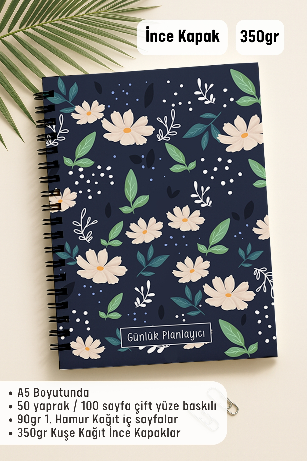 50 yaprak, 100 sayfa arkalı önlü baskılıdır. 100 günlük planlama için uygundur.