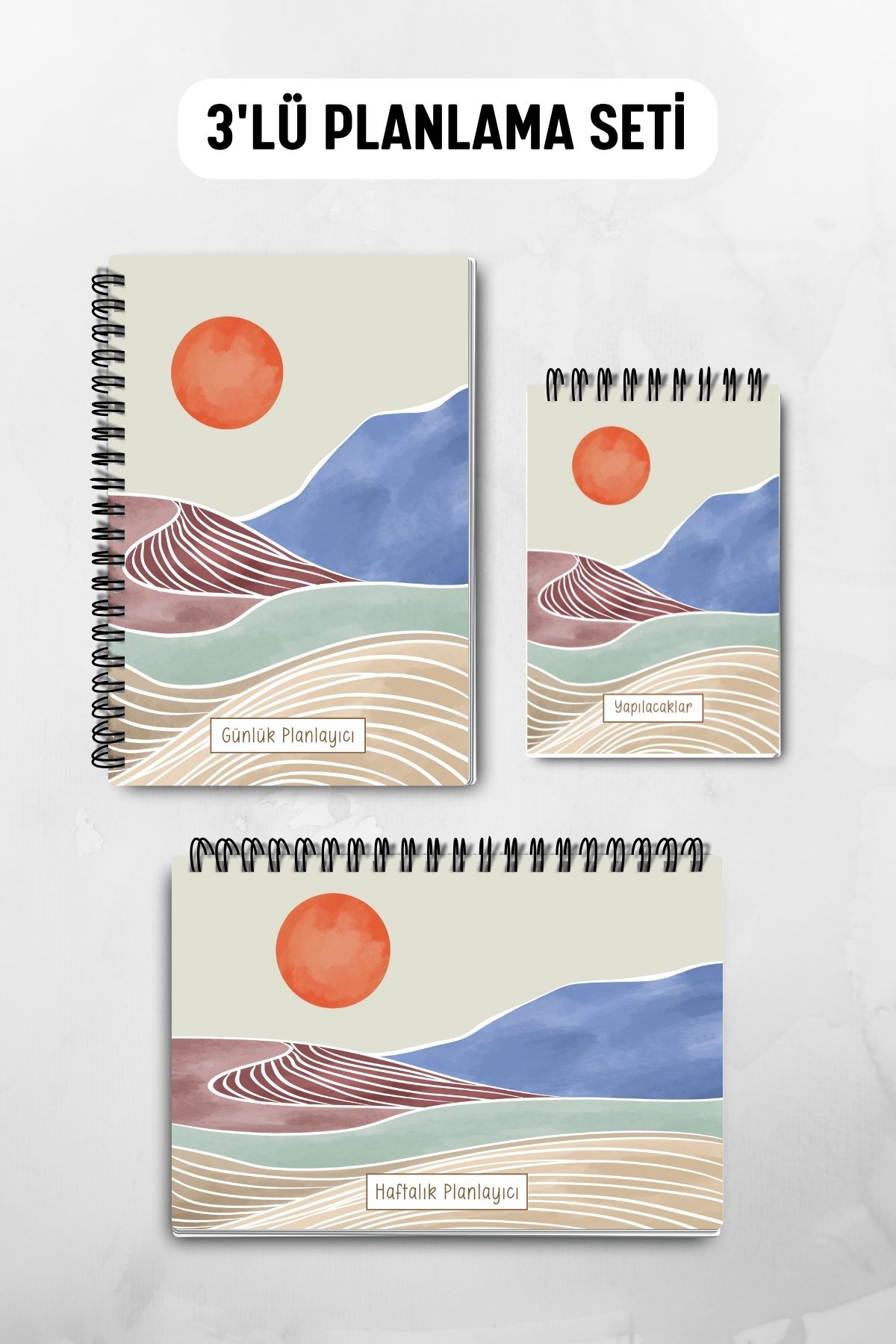 Kahve Rengi Boho 3'lü Planlama Seti ve A6 Takvim / Öğretmenler Günü