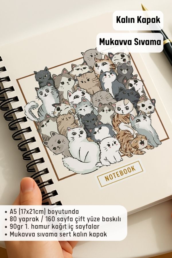 Kedili Kalın Kapaklı A5 Defter