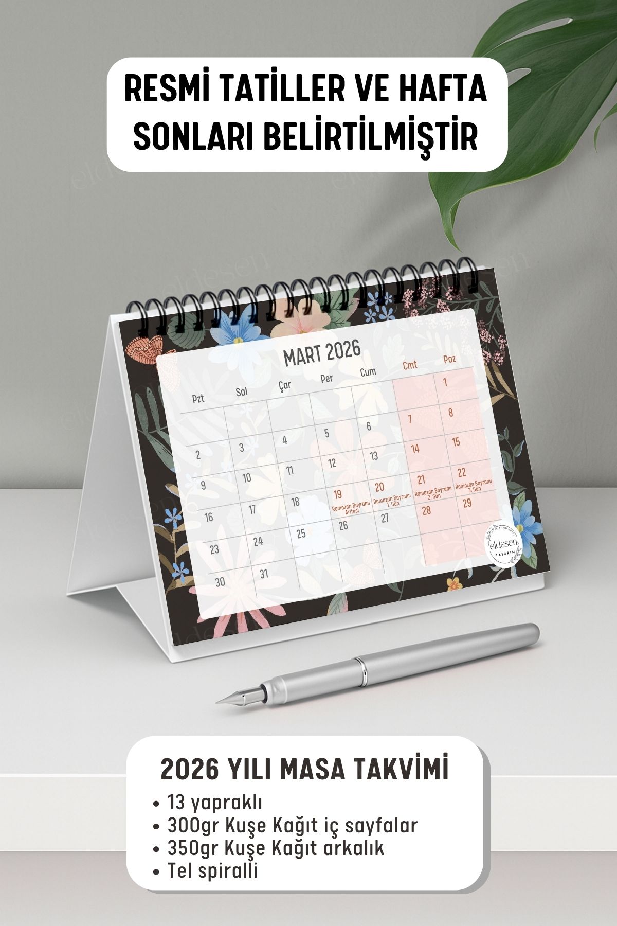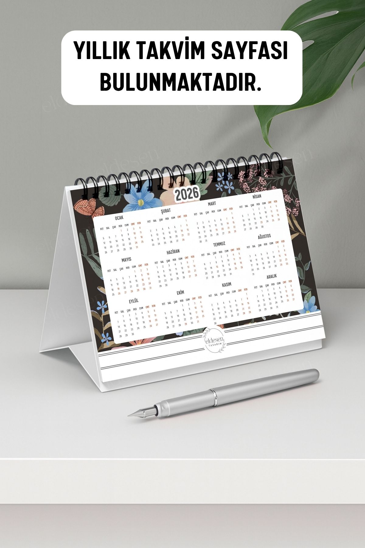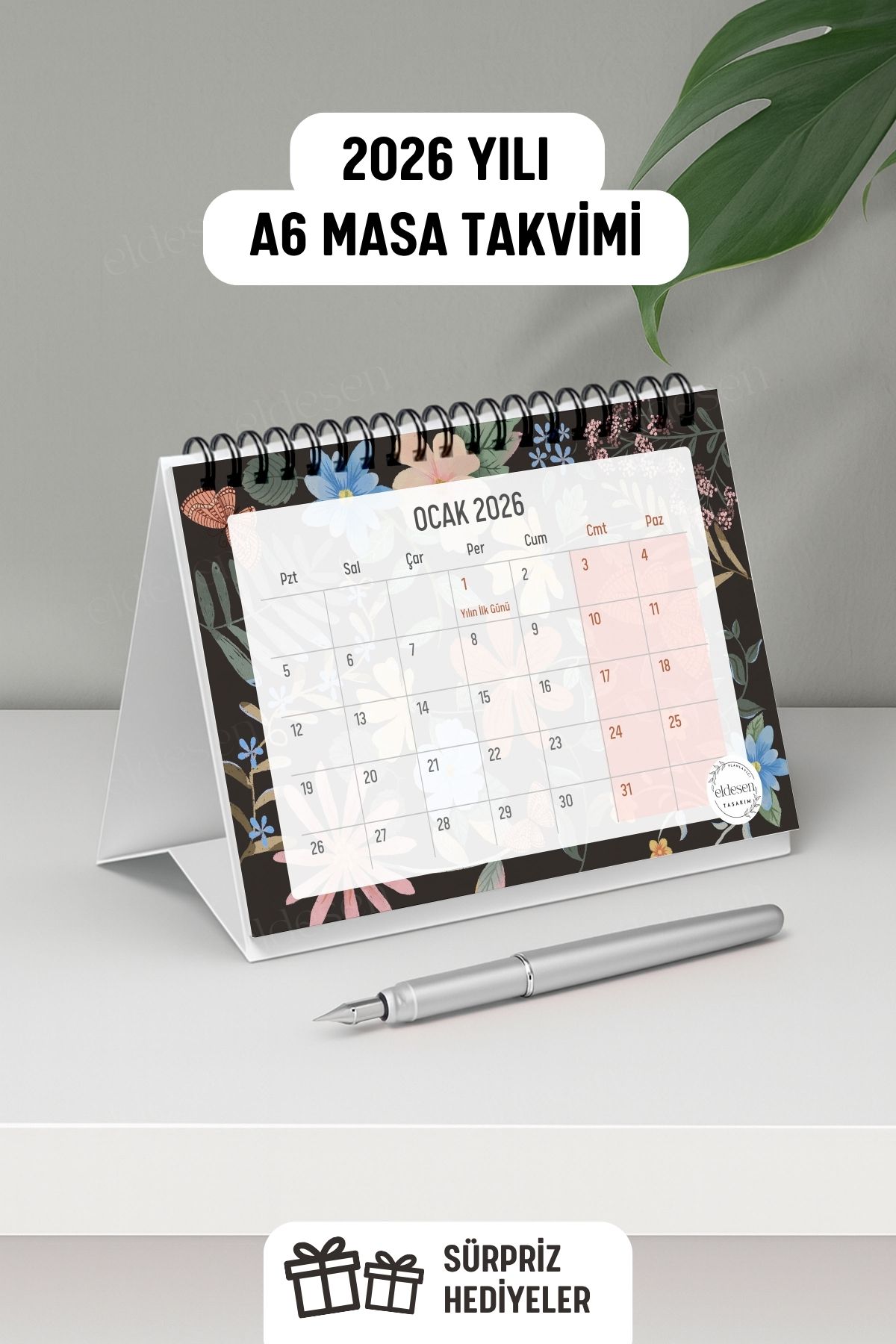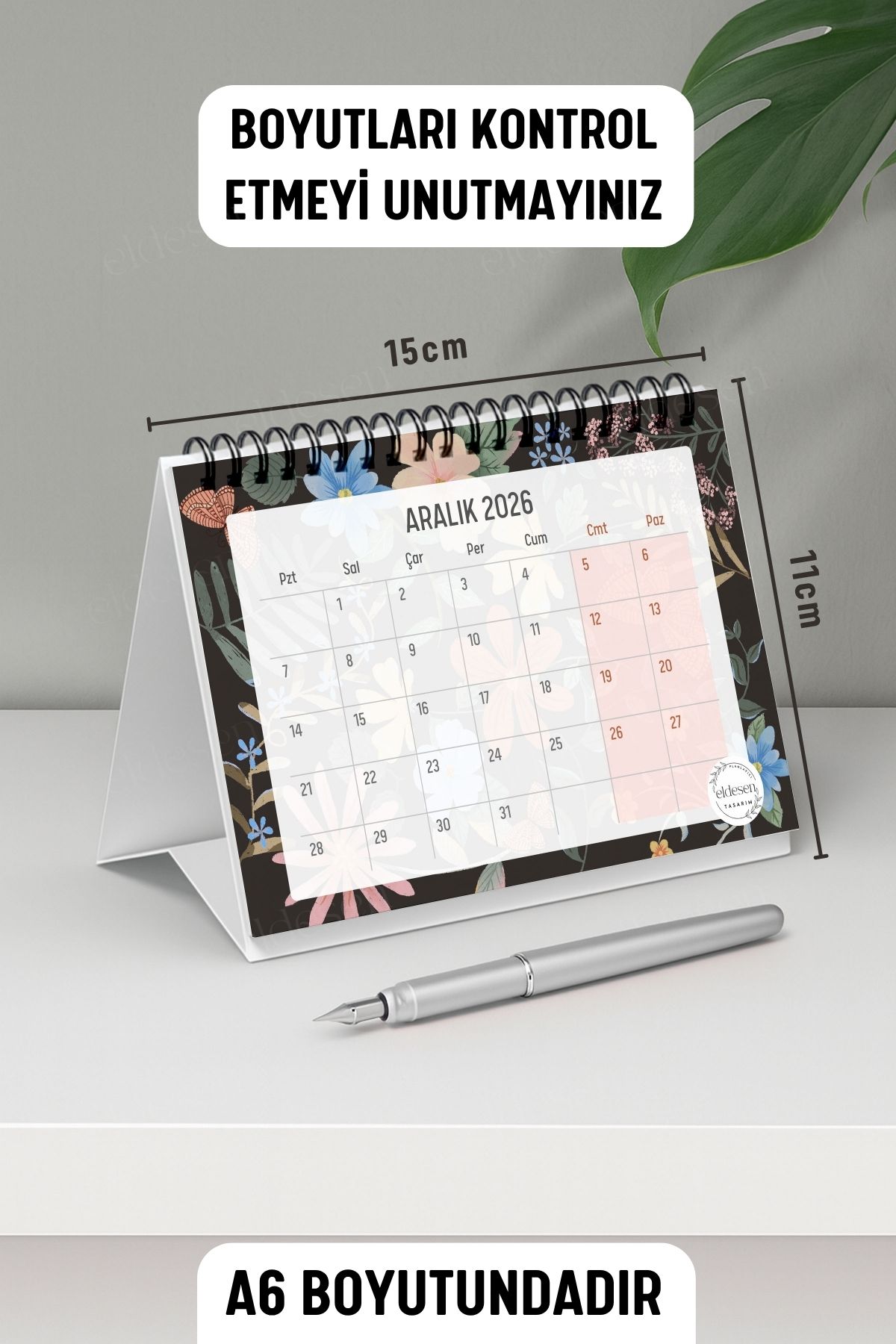2026 yılı için özel olarak tasarlanmış, A6 boyutunda (15x12cm) büyük boy masa takvimi.