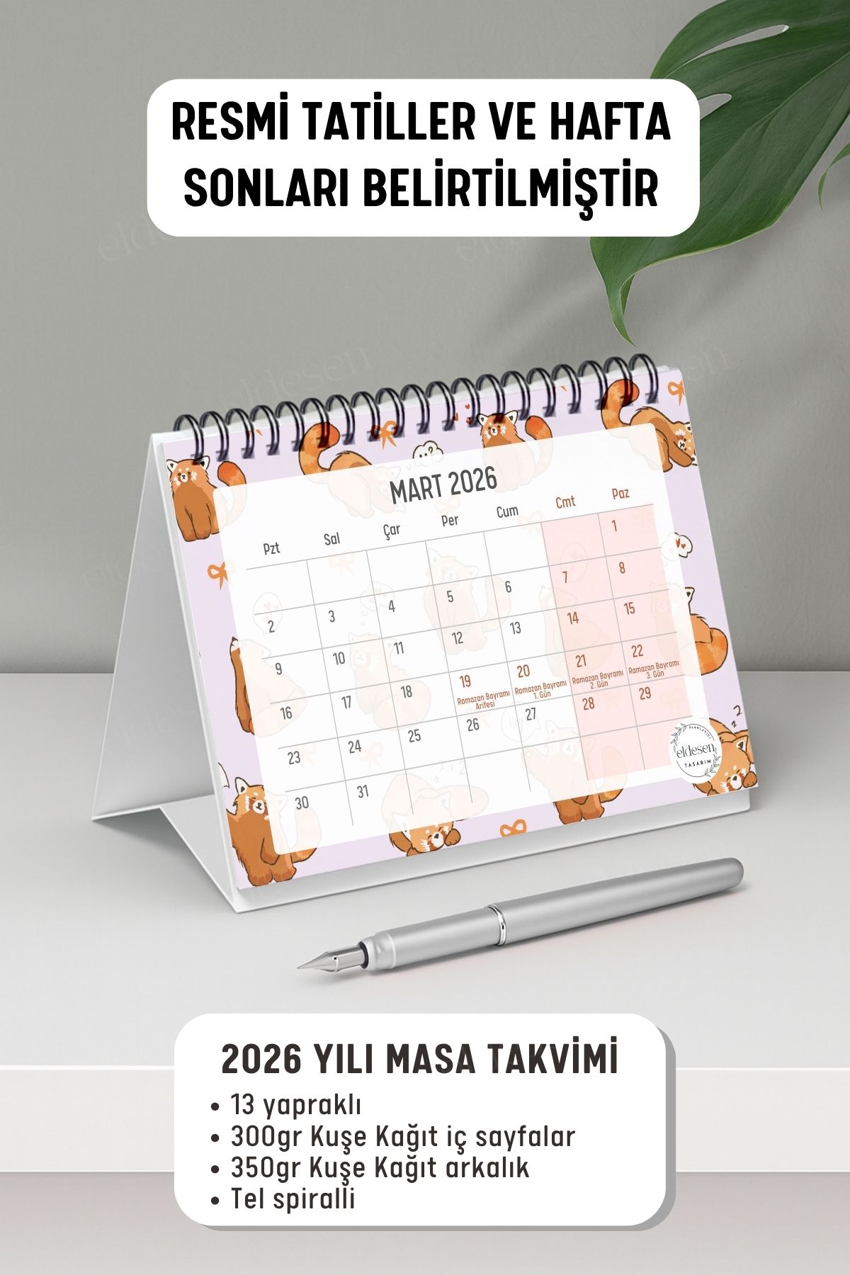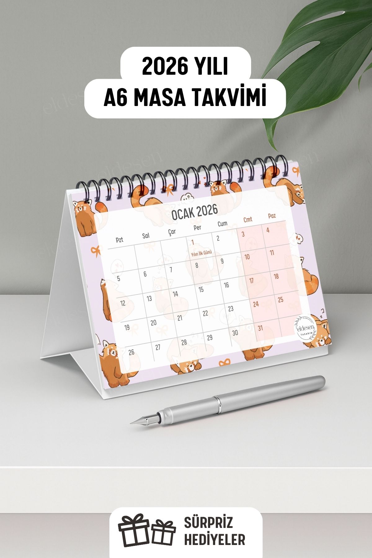 2026 yılı için özel olarak tasarlanmış, A6 boyutunda (15x12cm) büyük boy masa takvimi.
