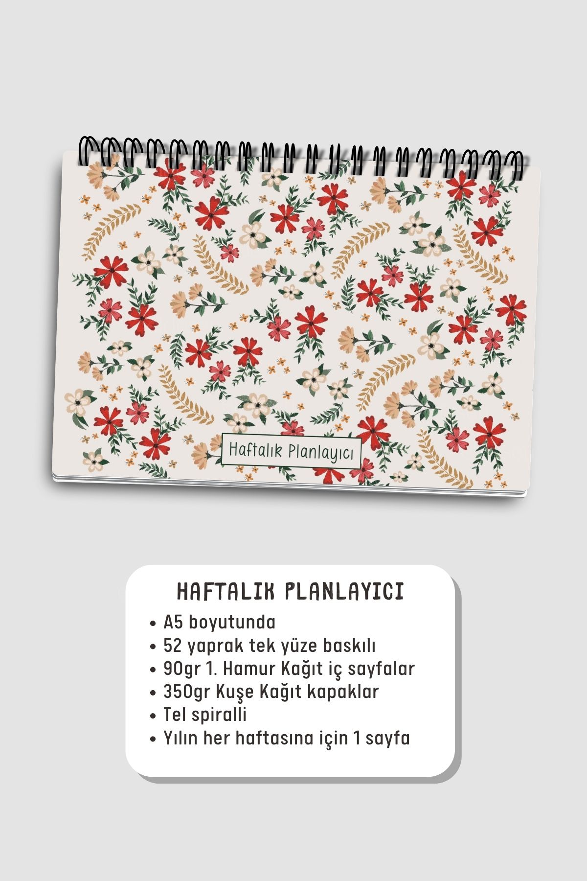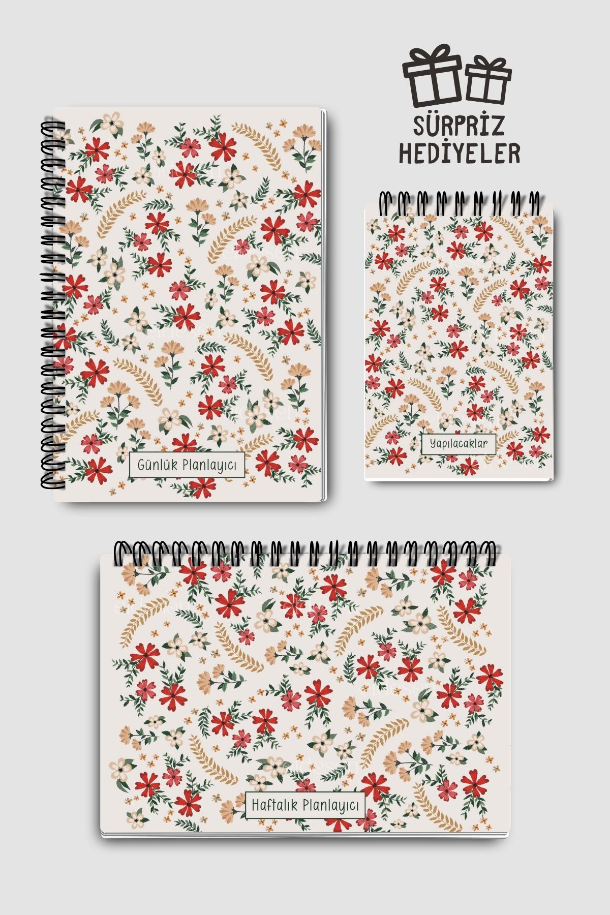 Kırmızı Çiçekli 3'lü Planlama Seti