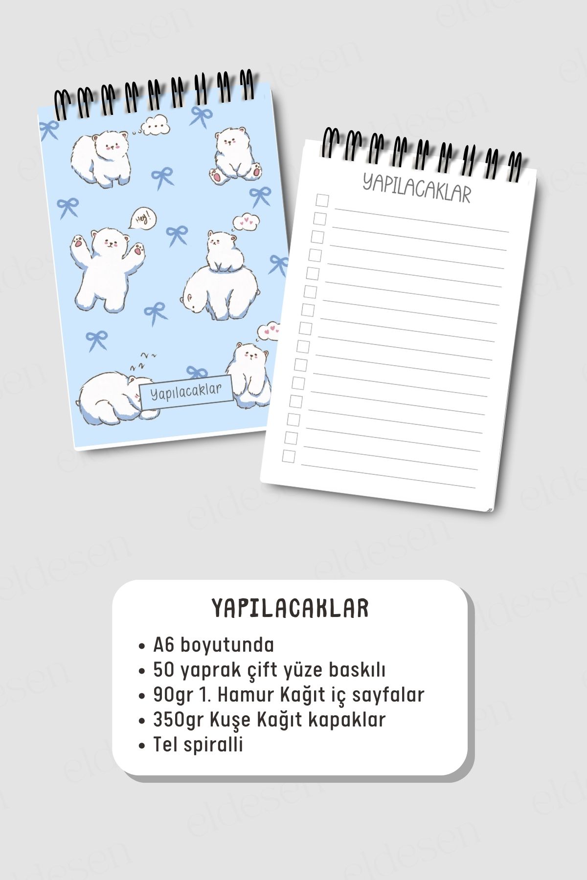 Tüm ürünlerde ✨ 350 gr kuşe kapak, 📄 90 gr 1. hamur iç sayfalar, 🔗 tel spiral cilt ve 📘 50 yaprak / 100 sayfa (arkalı önlü) bulunmaktadır.