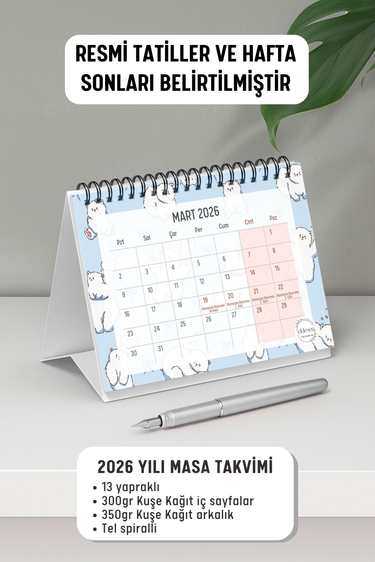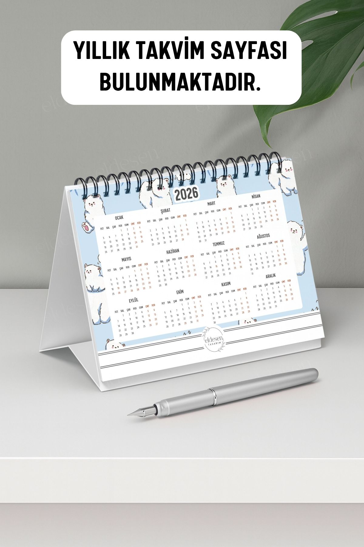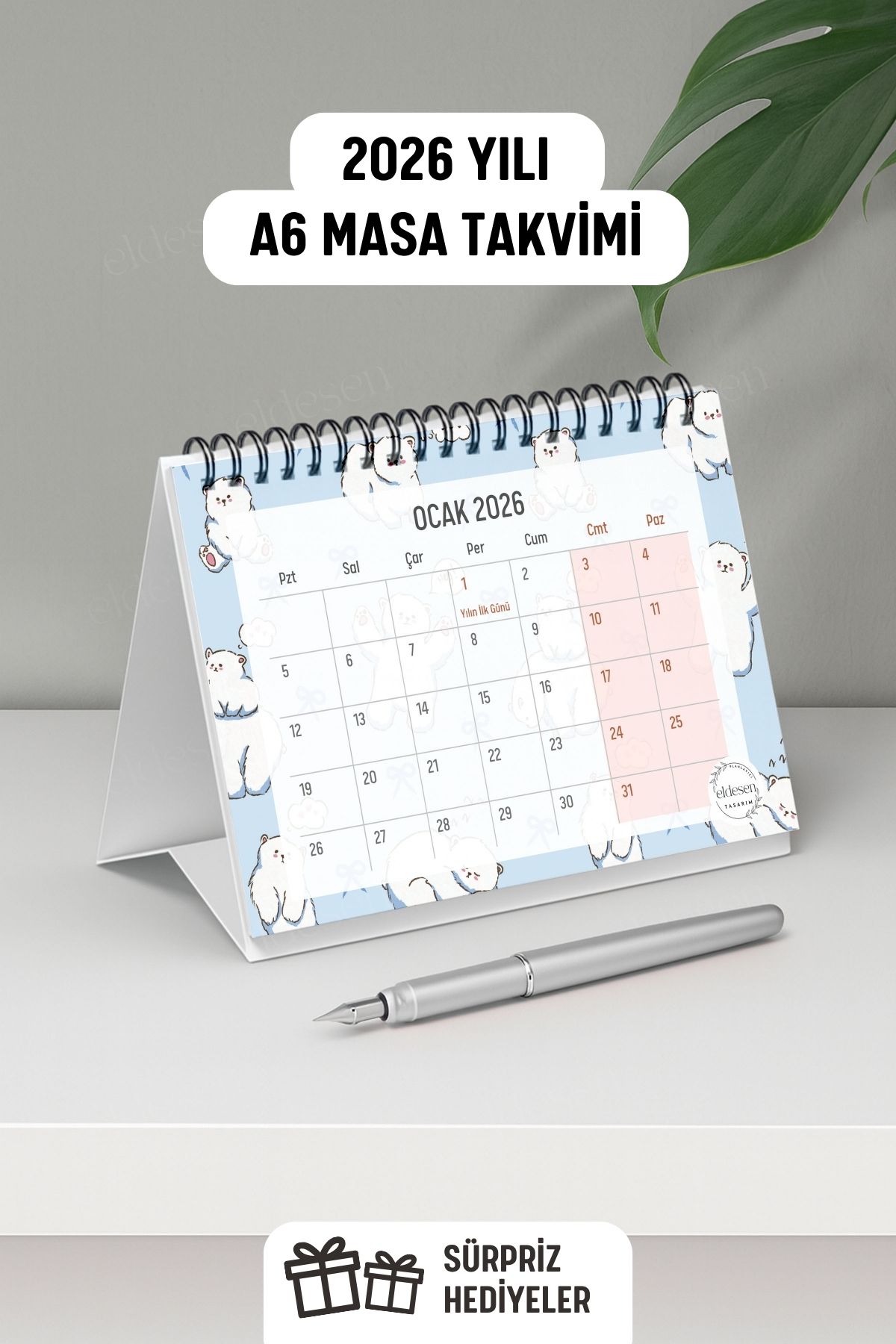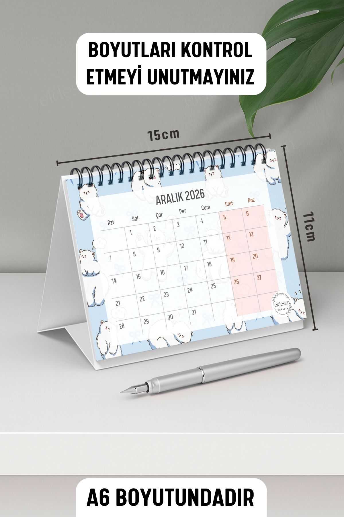 2026 yılı için özel olarak tasarlanmış, A6 boyutunda (15x12cm) büyük boy masa takvimi.