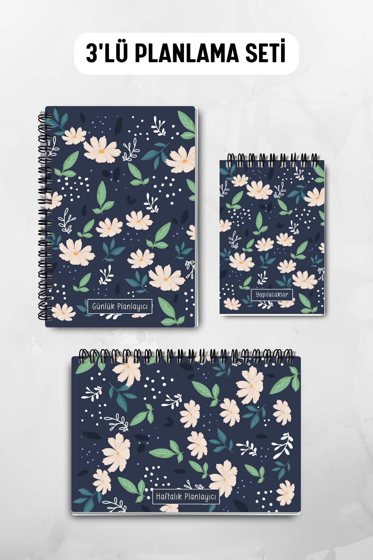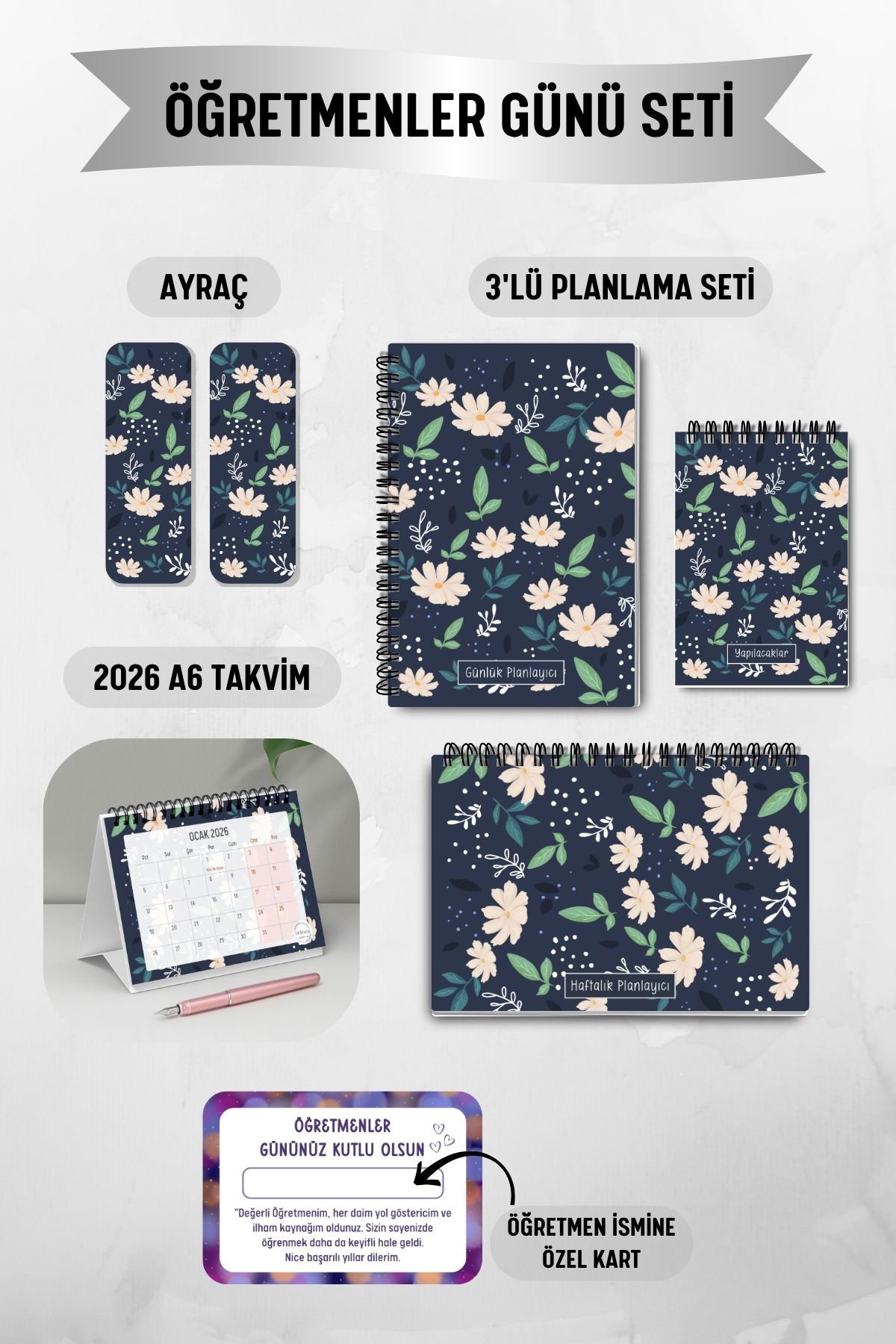 Lacivert Papatya 3'lü Planlama Seti ve A6 Takvim / Öğretmenler Günü