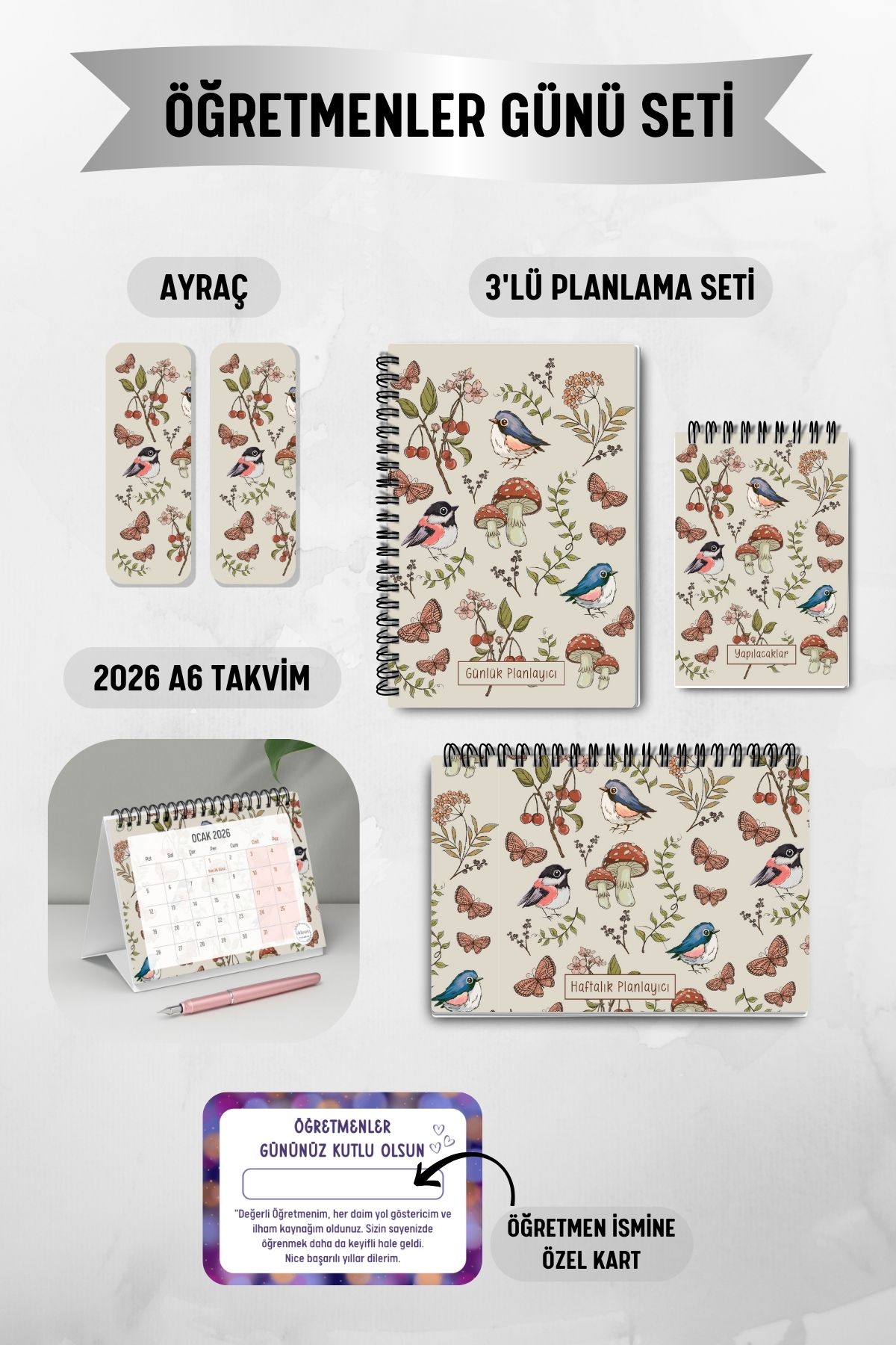 Mantar Kuş 3'lü Planlama Seti ve A6 Takvim / Öğretmenler Günü