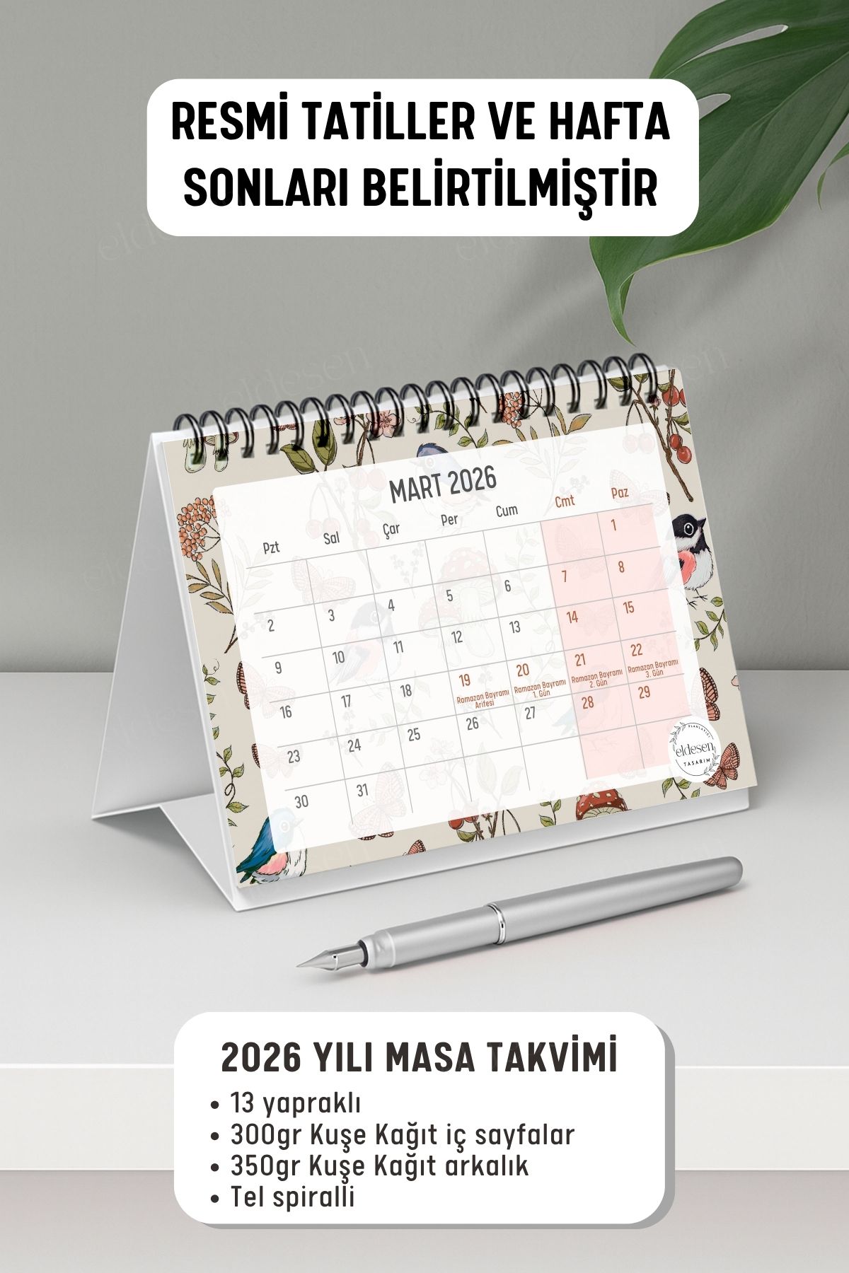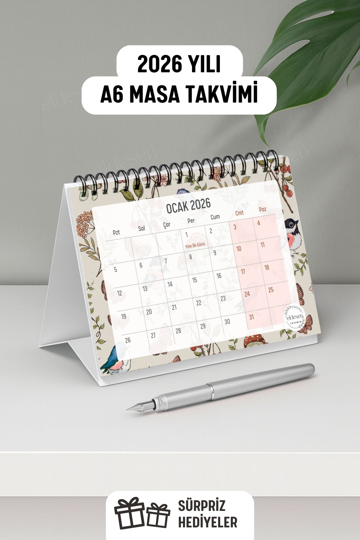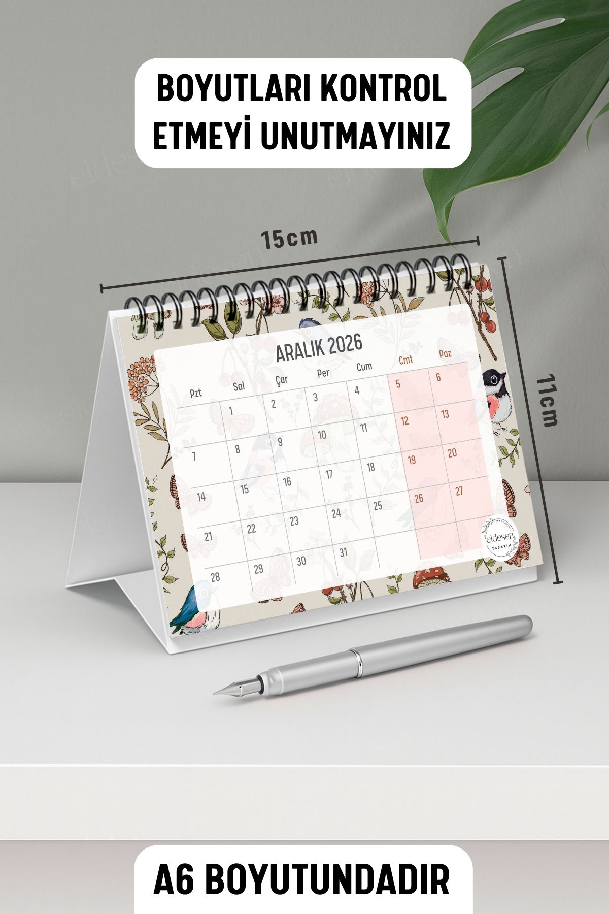 2026 yılı için özel olarak tasarlanmış, A6 boyutunda (15x12cm) büyük boy masa takvimi.