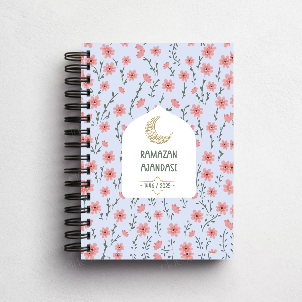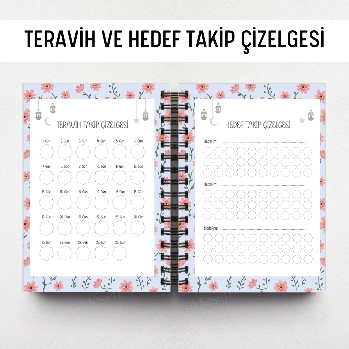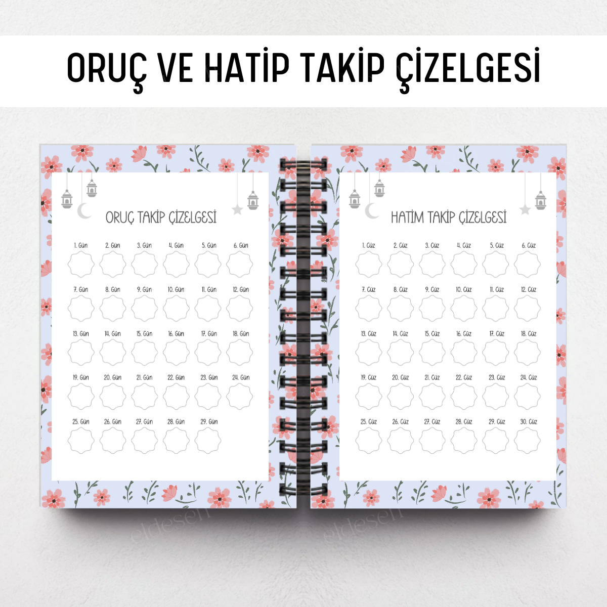 Mavi Çiçekli Ramazan Ajandası, Oruç, Hatim, Teravih, Günlük ve Aylık Planlayıcı