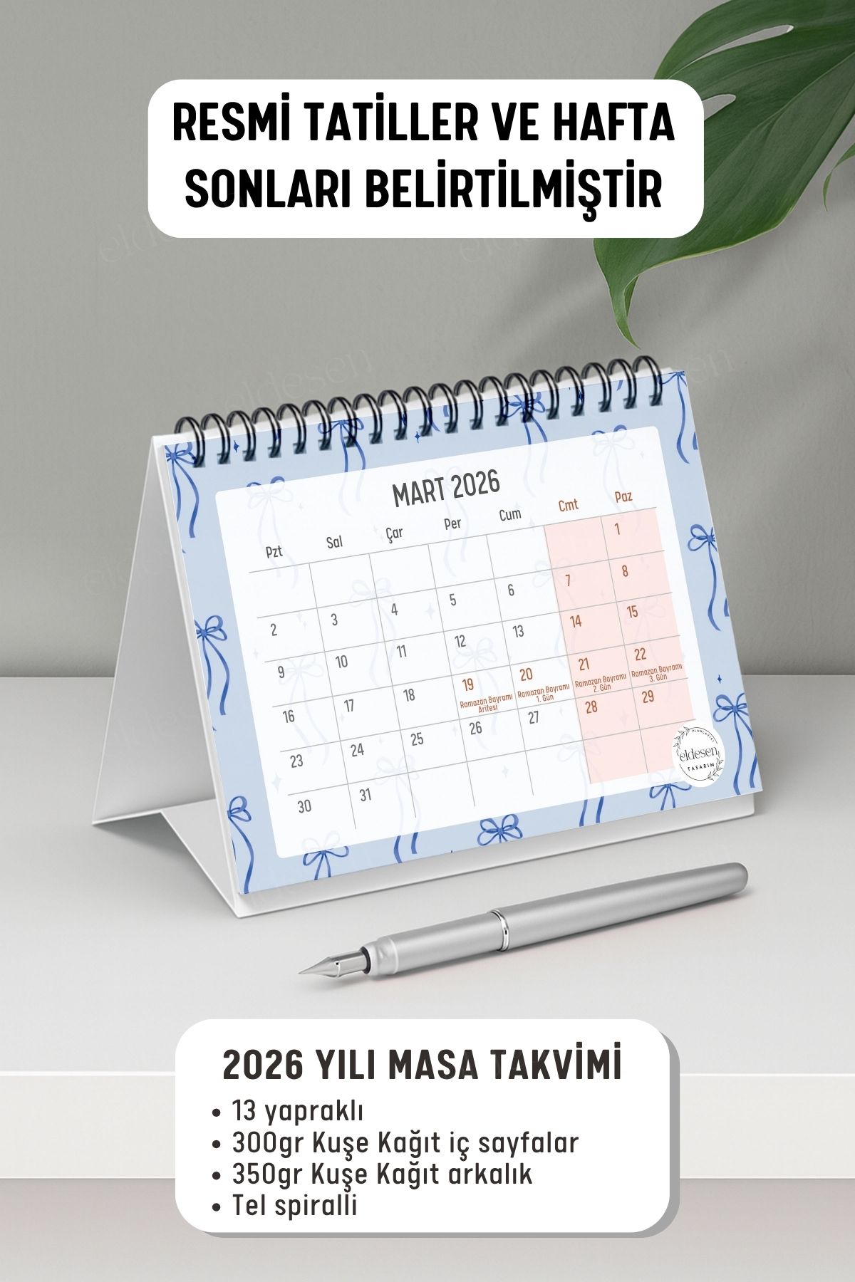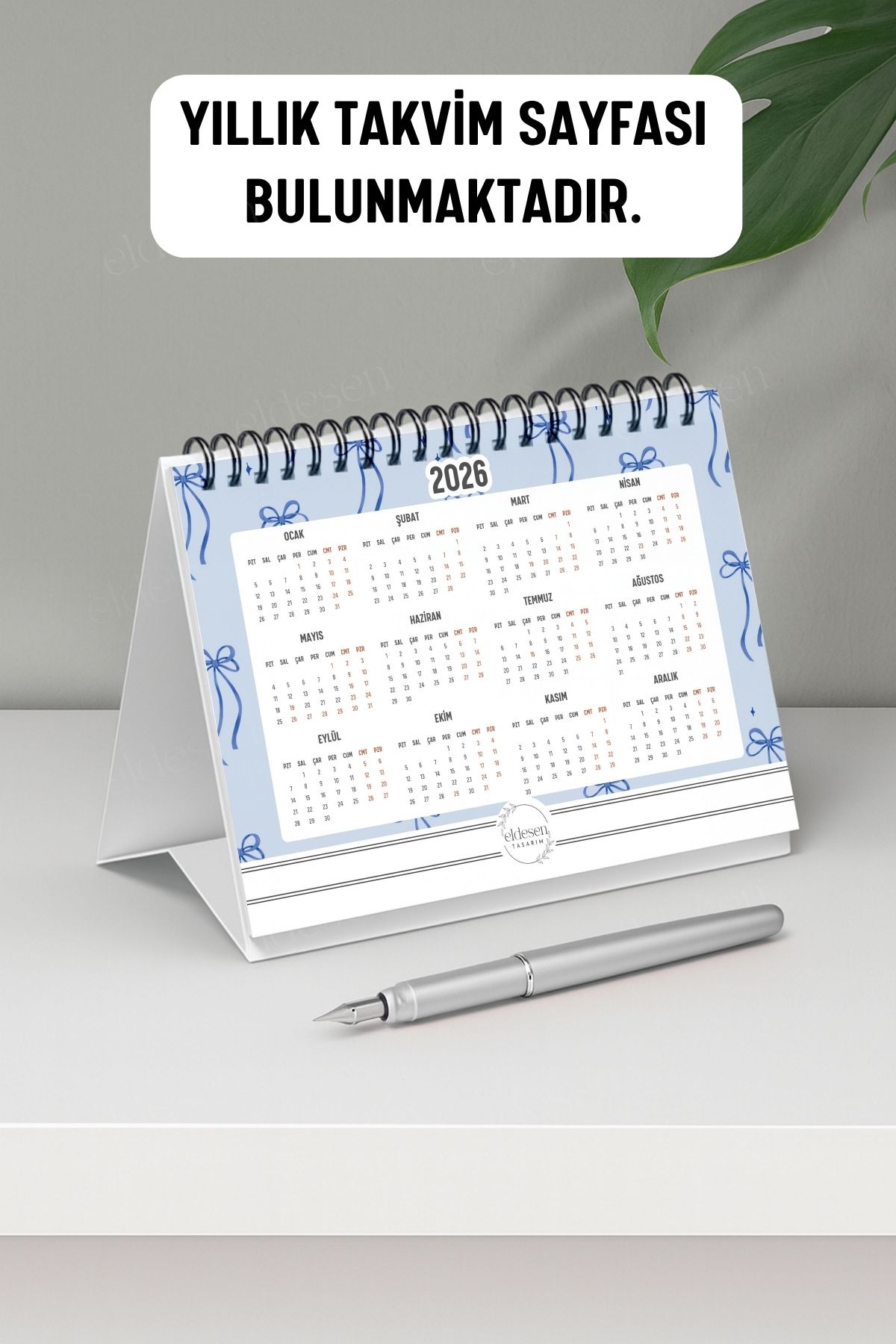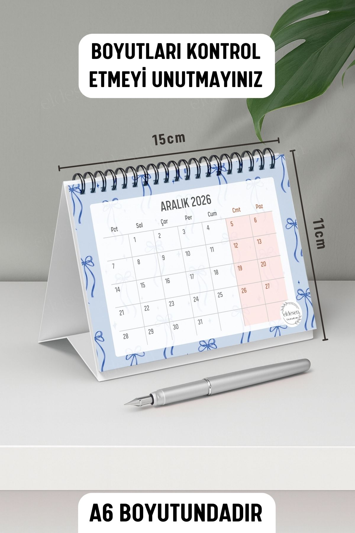 2026 yılı için özel olarak tasarlanmış, A6 boyutunda (15x12cm) büyük boy masa takvimi.