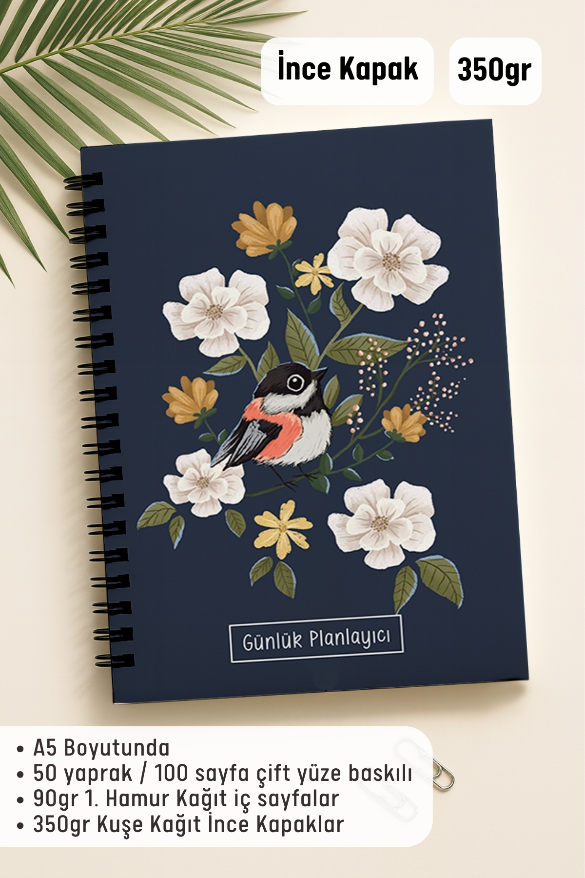 ▪️A5 (16 x 21 cm) ▪️50 yaprak / 100 Sayfa Çift Yüze Baskılı ▪️90gr 1. Hamur Kağıt İç Sayfalar ▪️350gr Kuşe Kağıt İnce Kapaklar