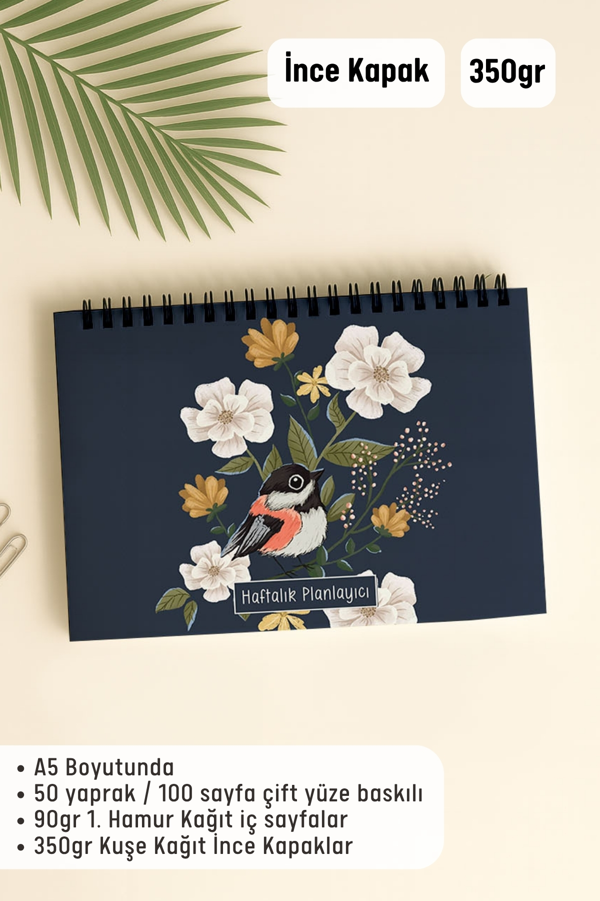 ▪️A5 (16 x 21 cm) ▪️50 yaprak / 100 Sayfa Çift Yüze Baskılı ▪️90gr 1. Hamur Kağıt İç Sayfalar ▪️350gr Kuşe Kağıt İnce Kapaklar