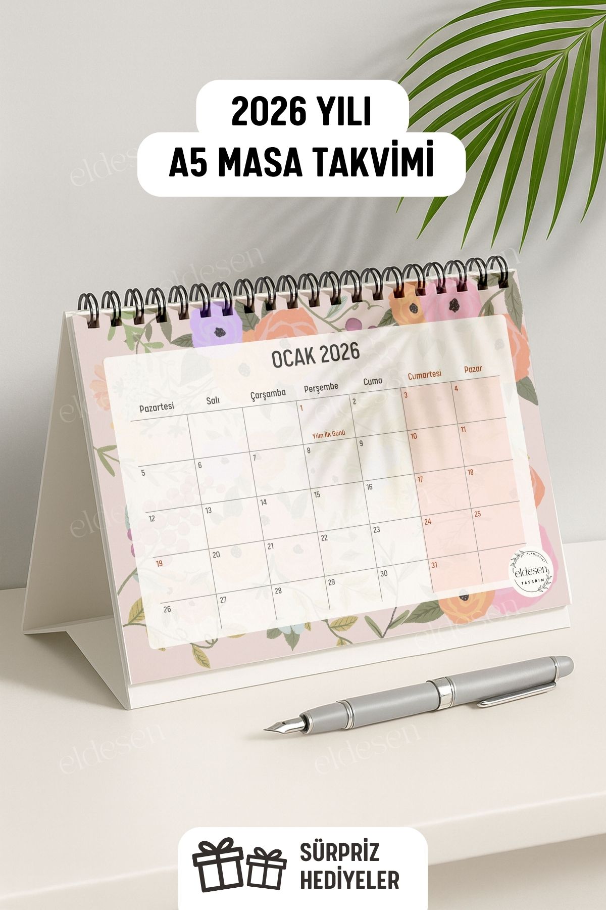 2026 yılı için özel olarak tasarlanmış, A5 boyutunda (21x16cm) büyük boy masa takvimi.