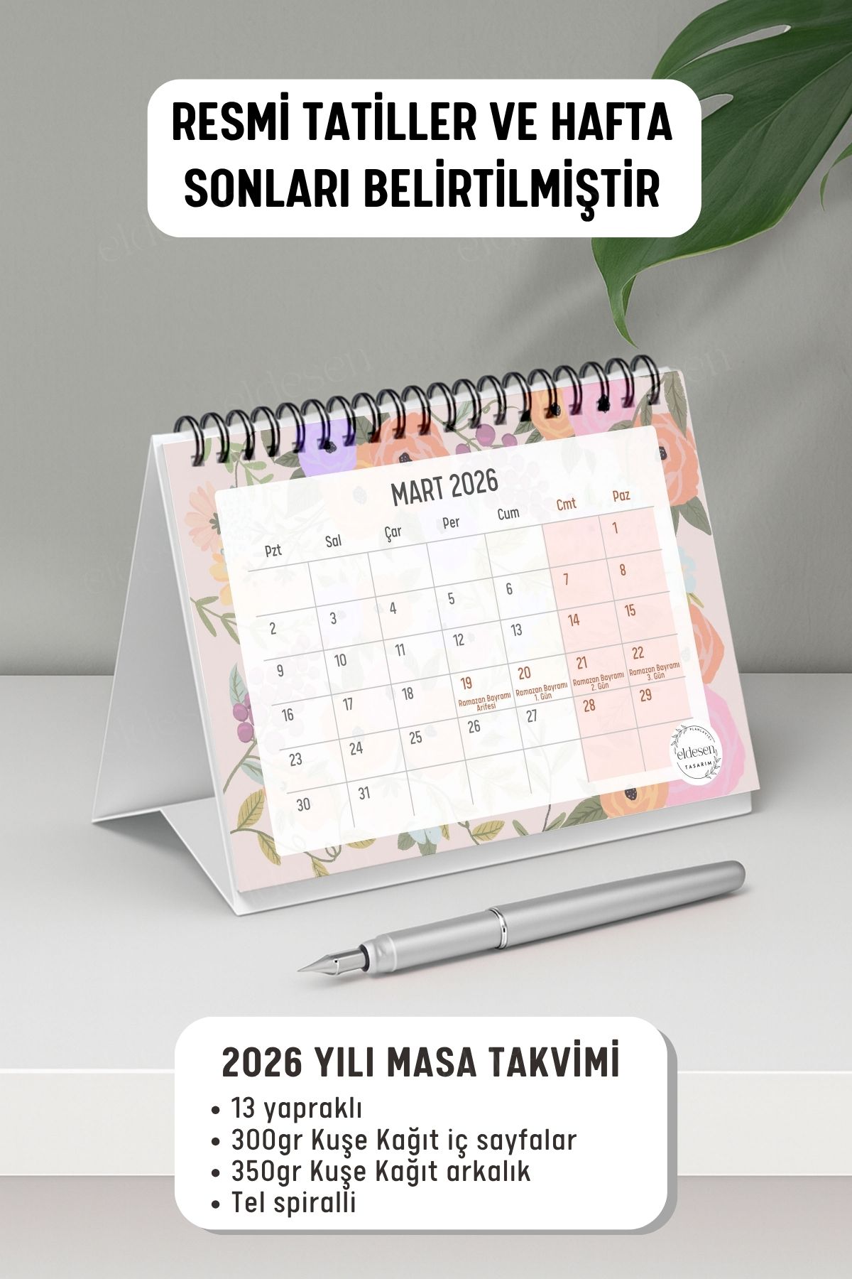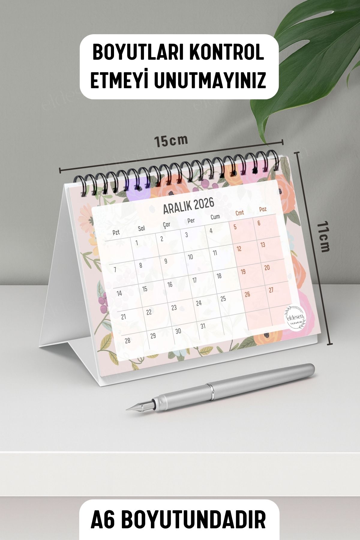 2026 yılı için özel olarak tasarlanmış, A6 boyutunda (15x12cm) büyük boy masa takvimi.