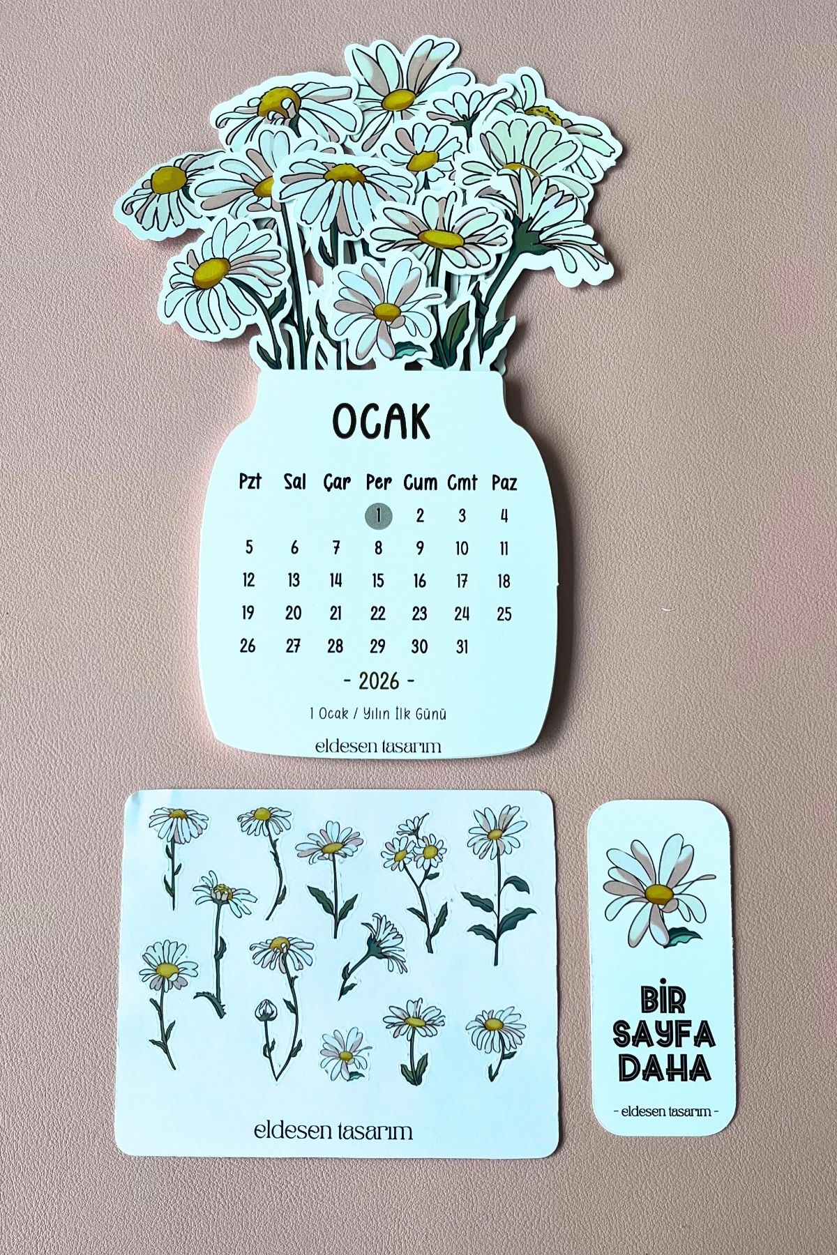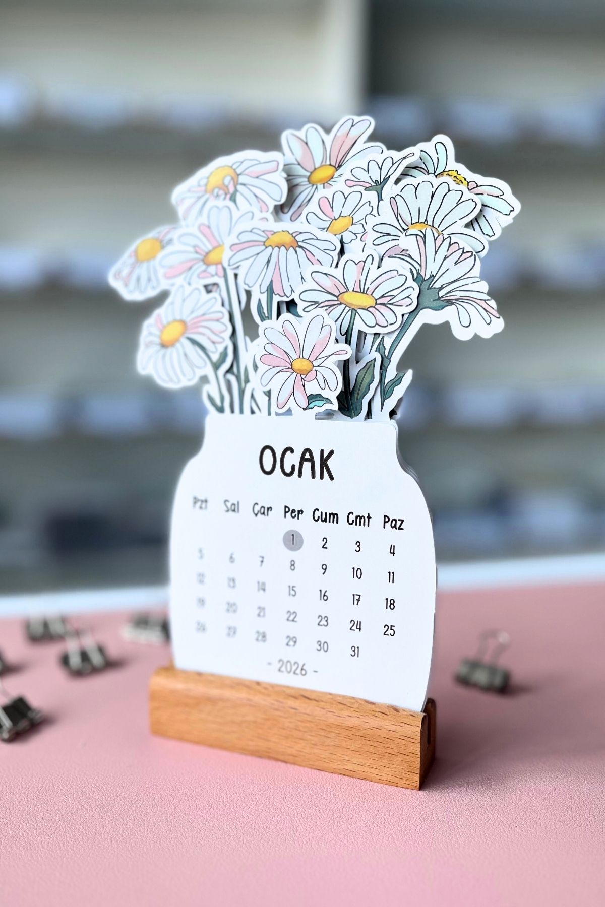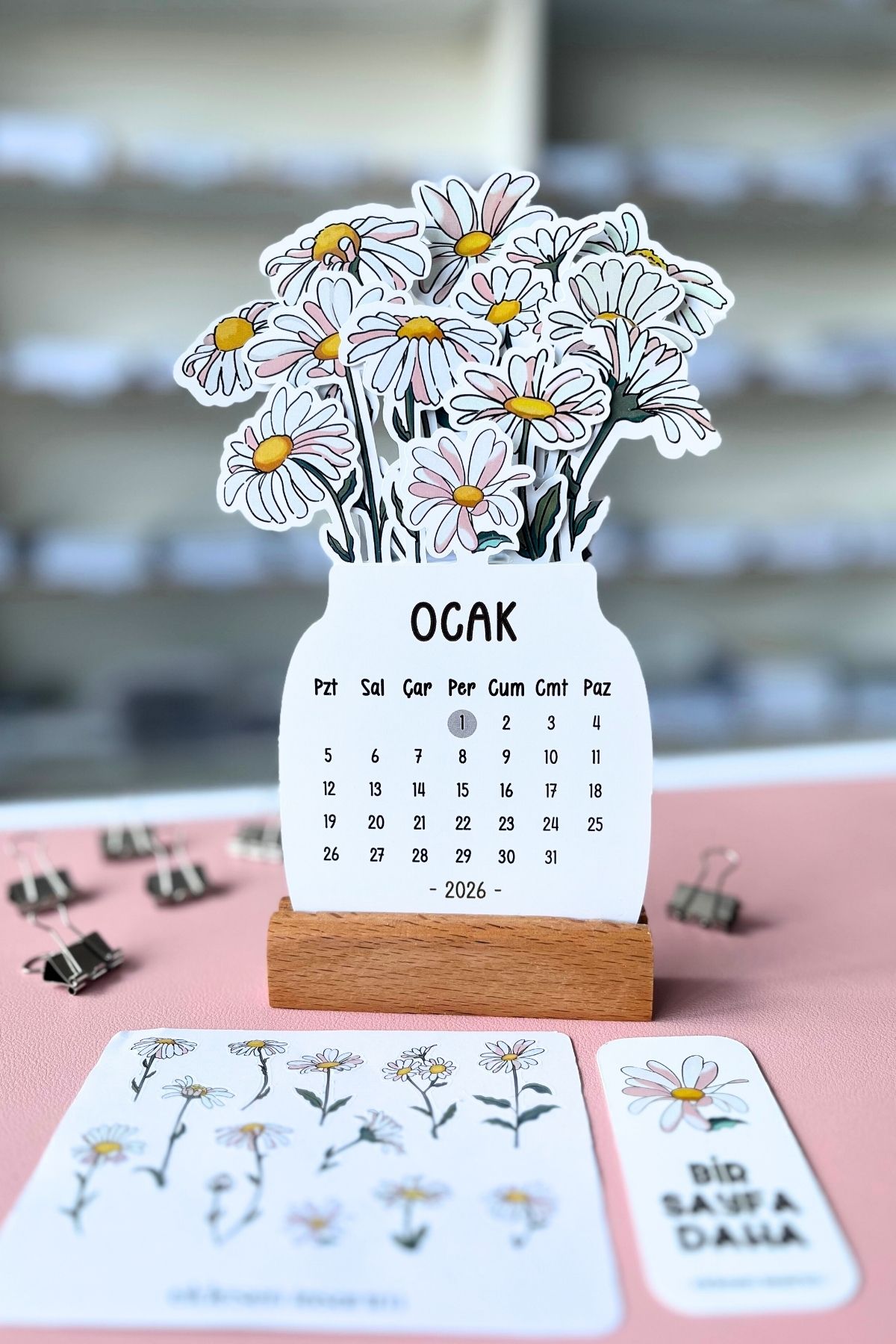Papatya 2026 Kayın Ağacı Standlı Masaüstü Takvim