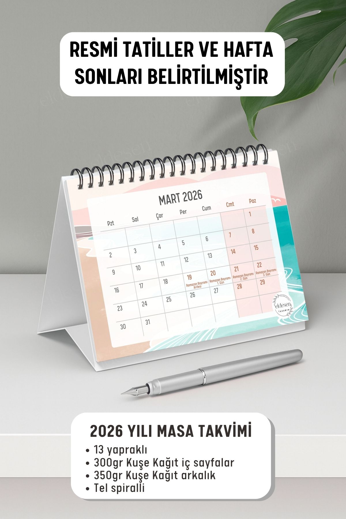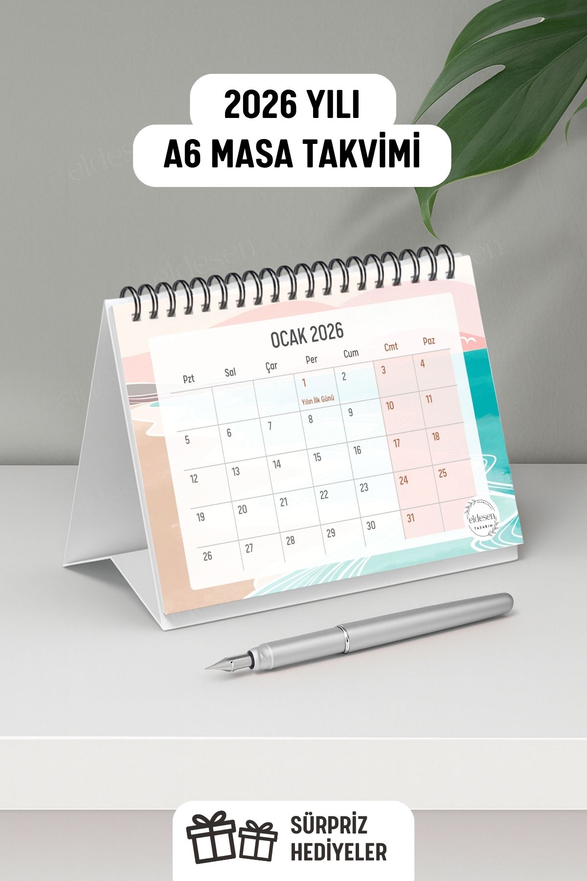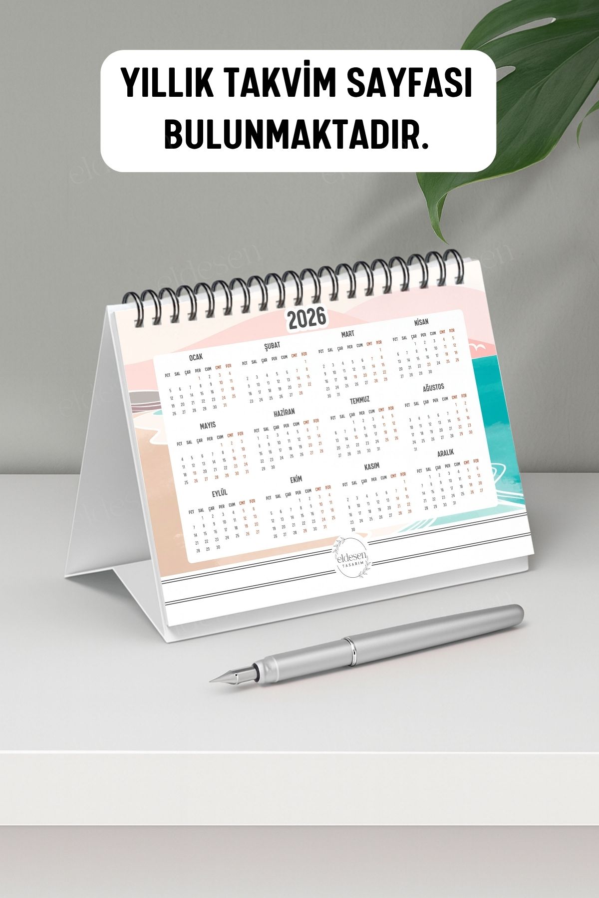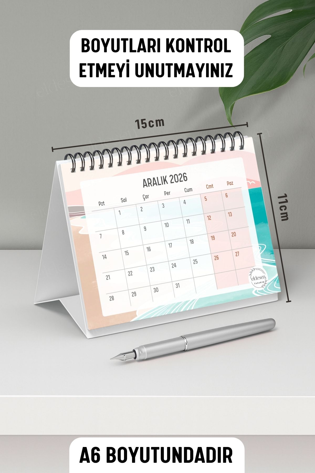 2025 yılı için özel olarak tasarlanmış, A5 boyutunda (21x16cm) büyük boy masa takvimi.