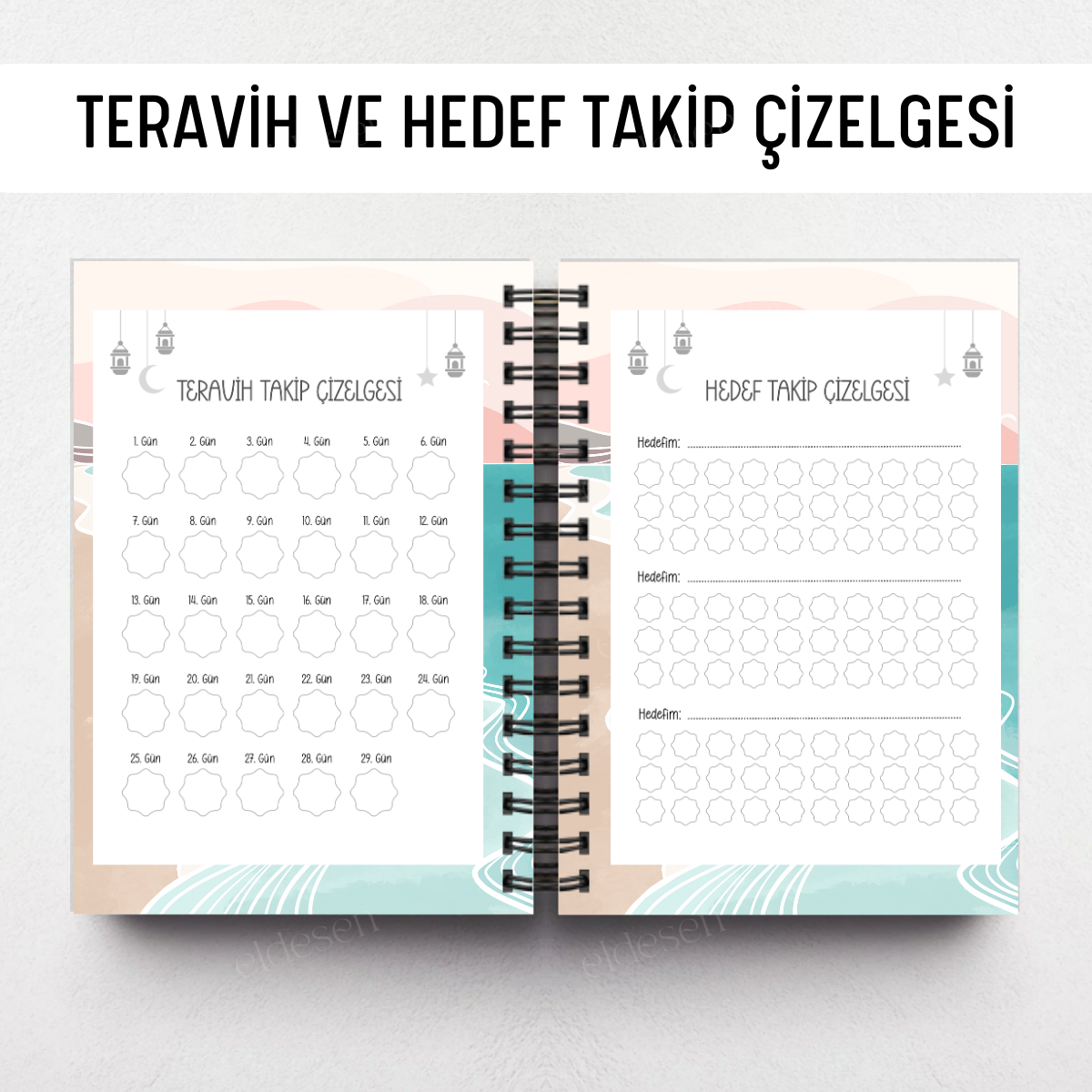 Pembe Boho Ramazan Ajandası, Oruç, Hatim, Teravih, Günlük ve Aylık Planlayıcı