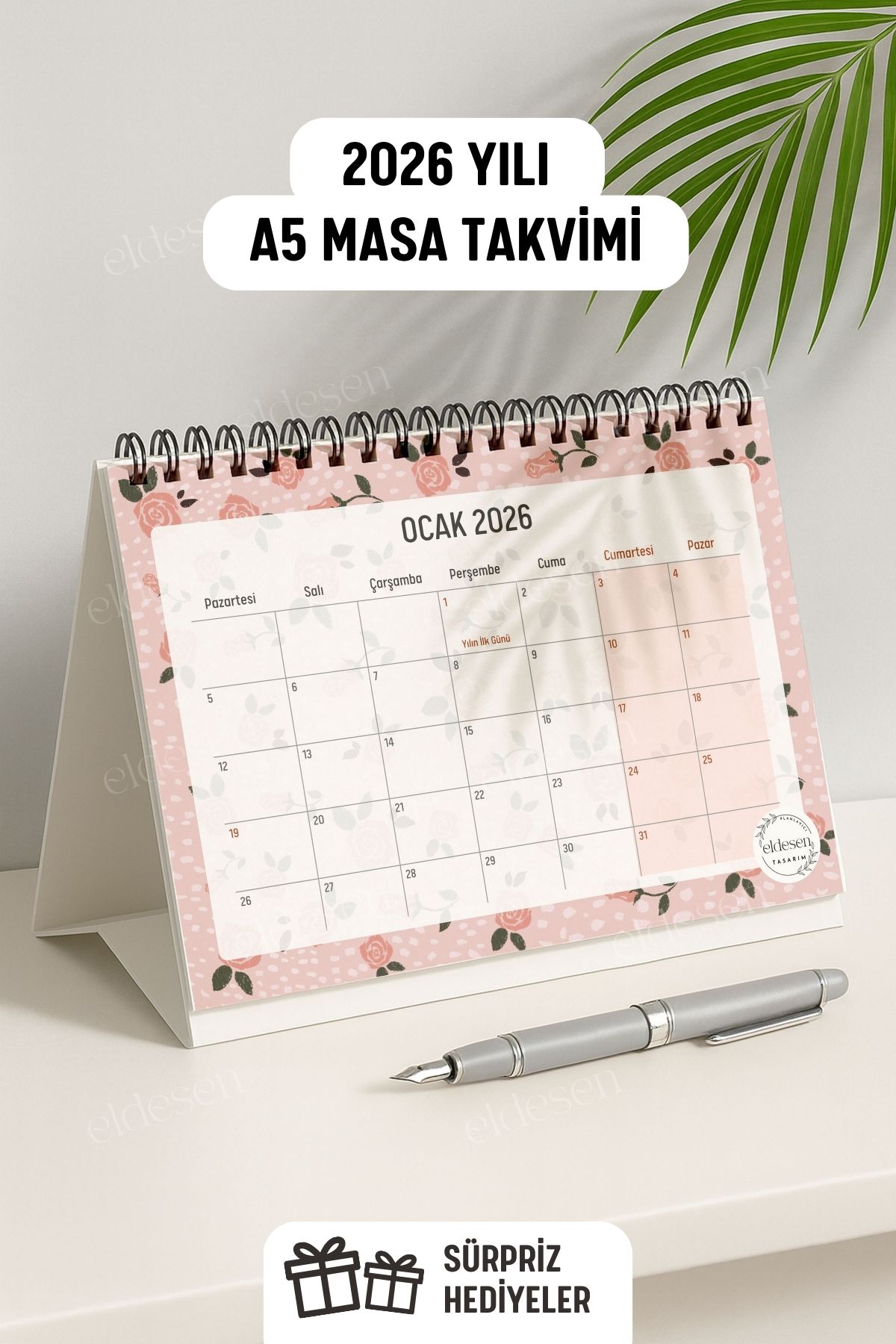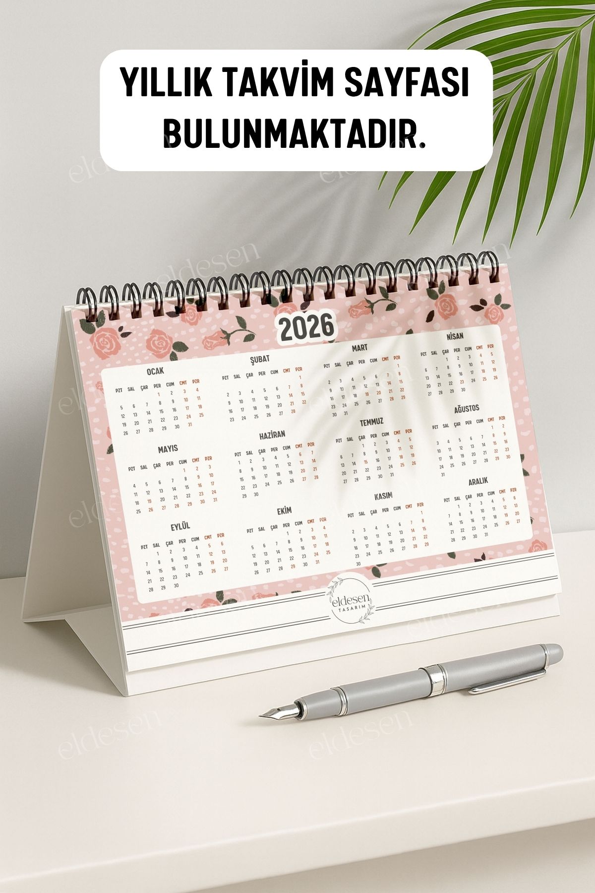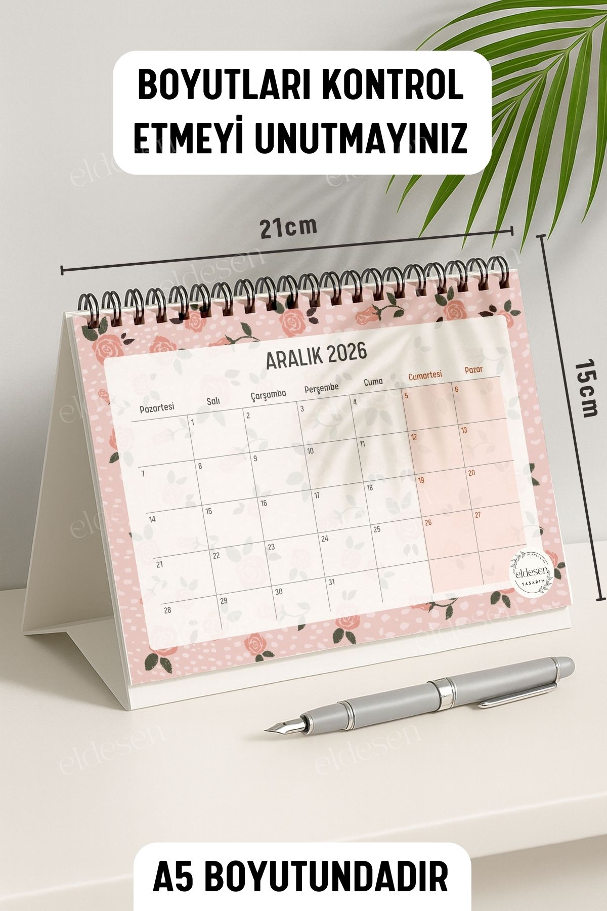 2026 yılı için özel olarak tasarlanmış, A5 boyutunda (21x16cm) büyük boy masa takvimi.