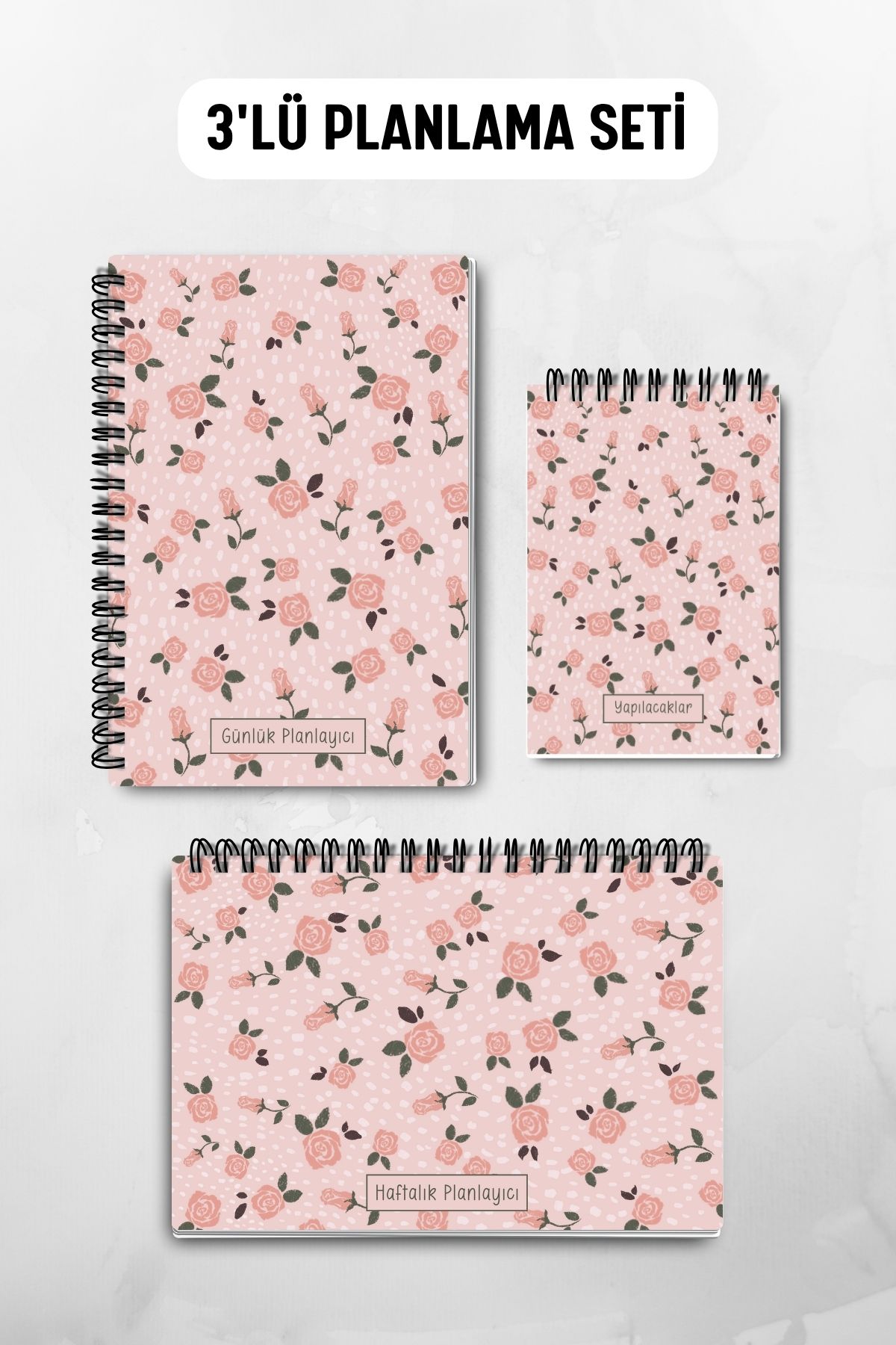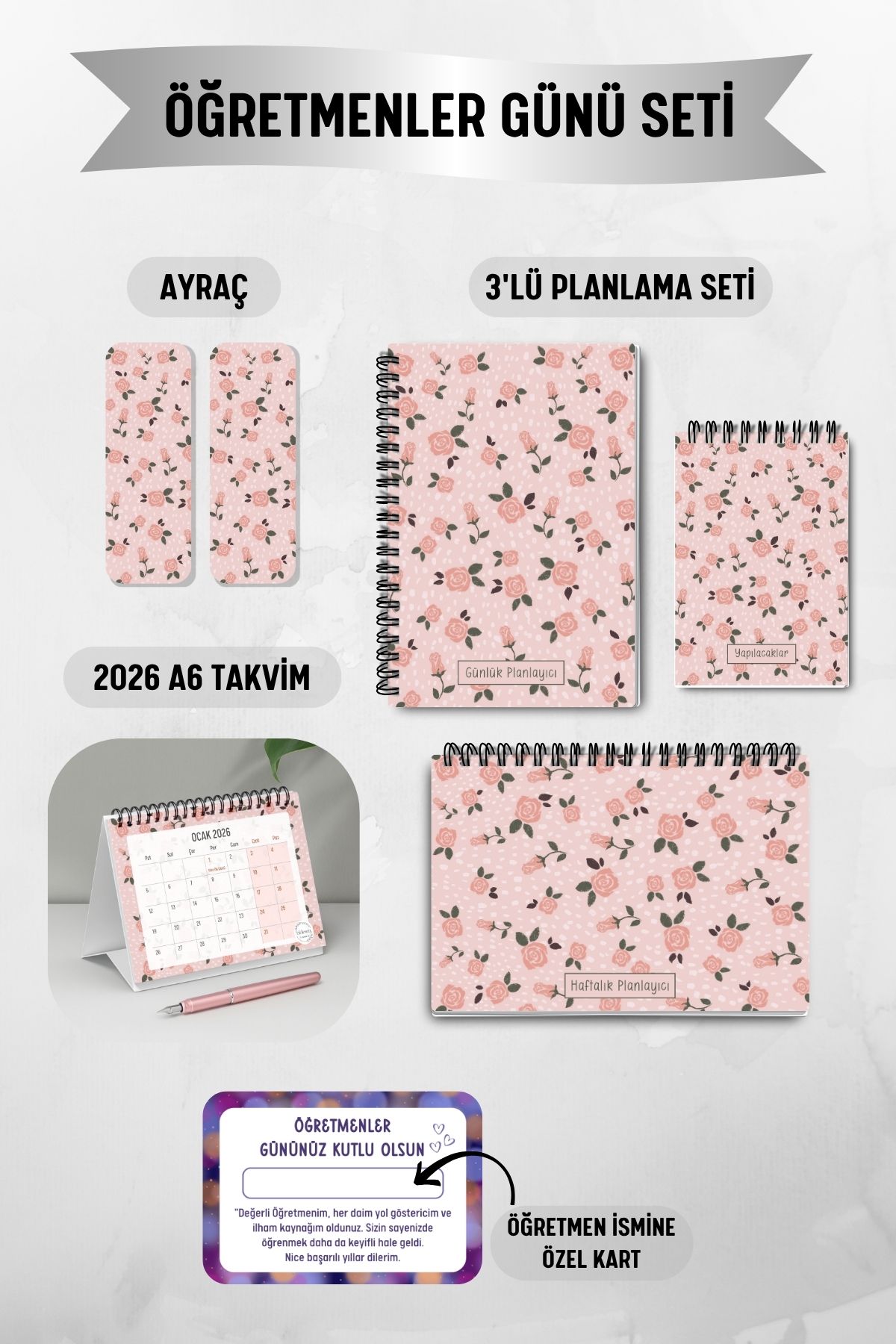 Pembe Çiçek 3'lü Planlama Seti ve A6 Takvim / Öğretmenler Günü
