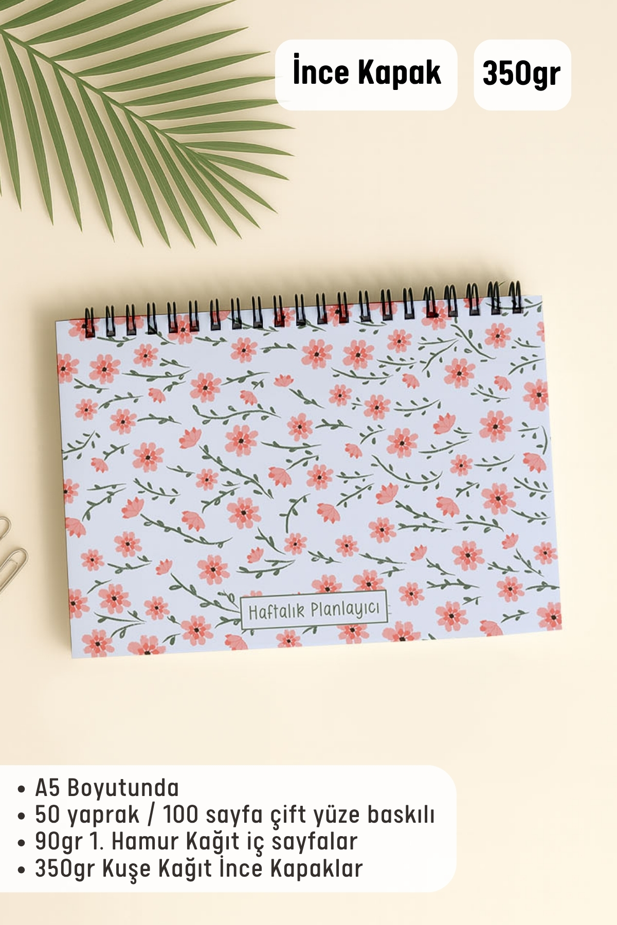 ▪️A5 (16 x 21 cm) ▪️50 yaprak / 100 Sayfa Çift Yüze Baskılı ▪️90gr 1. Hamur Kağıt İç Sayfalar ▪️350gr Kuşe Kağıt İnce Kapaklar
