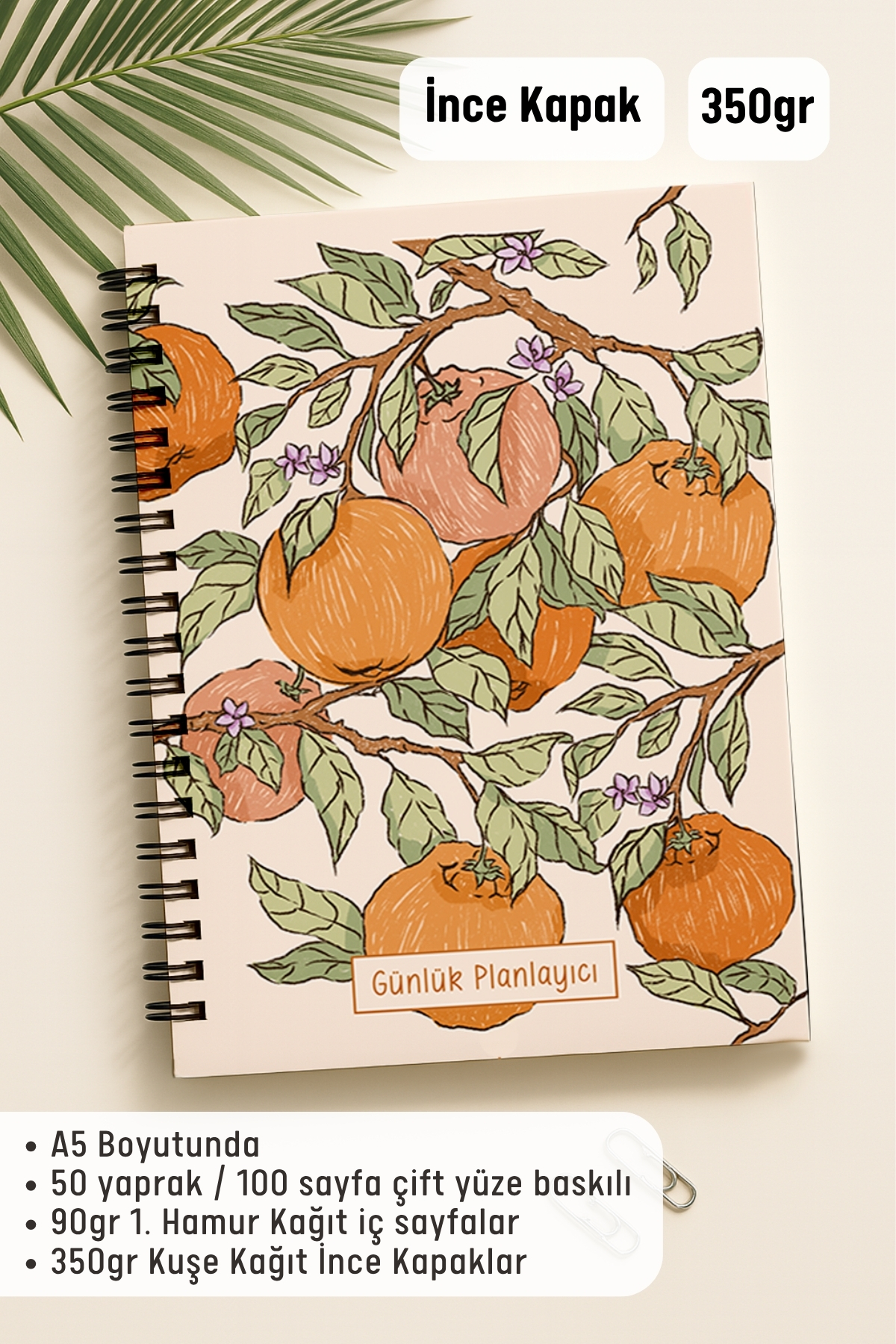 ▪️A5 (16 x 21 cm) ▪️50 yaprak / 100 Sayfa Çift Yüze Baskılı ▪️90gr 1. Hamur Kağıt İç Sayfalar ▪️350gr Kuşe Kağıt İnce Kapaklar