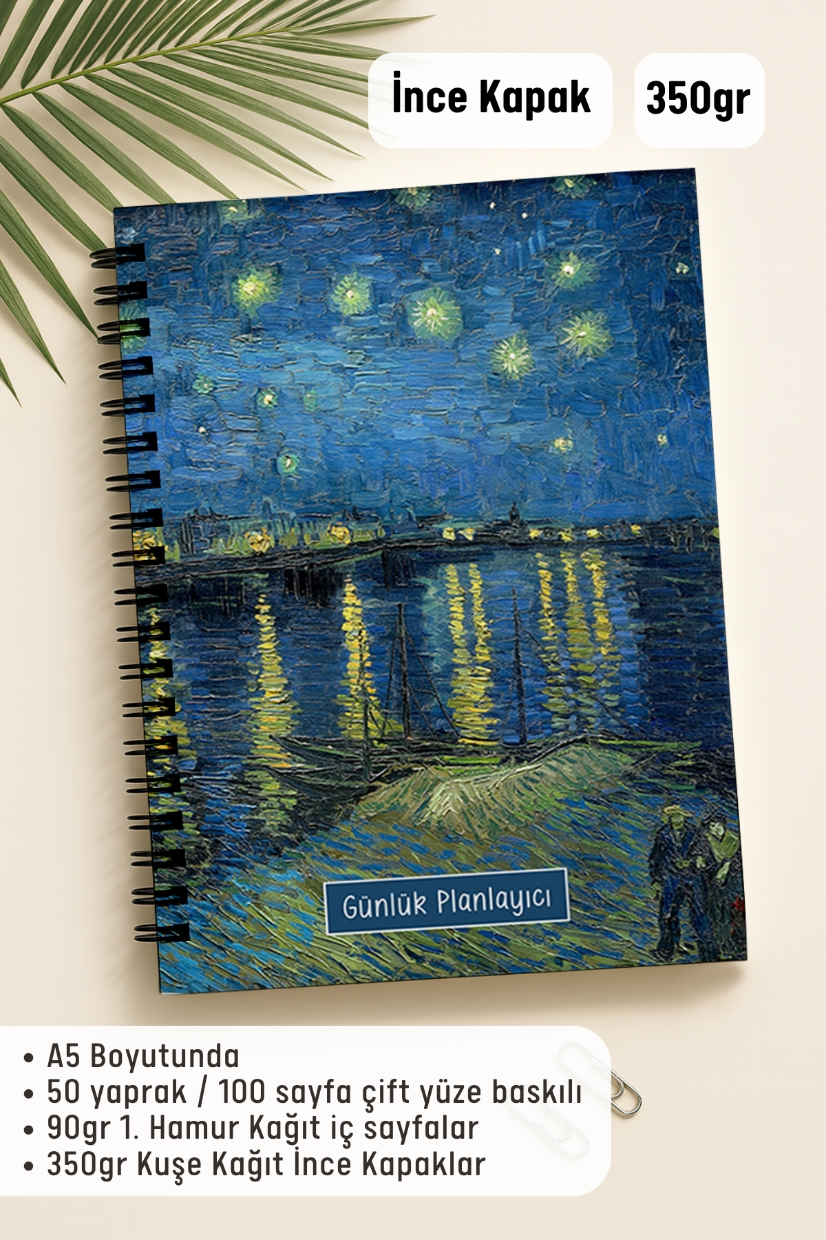 ▪️A5 (16 x 21 cm) ▪️50 yaprak / 100 Sayfa Çift Yüze Baskılı ▪️90gr 1. Hamur Kağıt İç Sayfalar ▪️350gr Kuşe Kağıt İnce Kapaklar