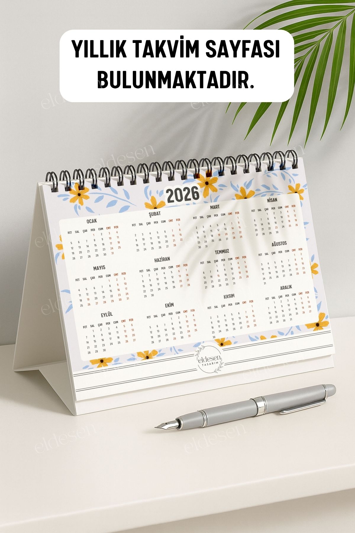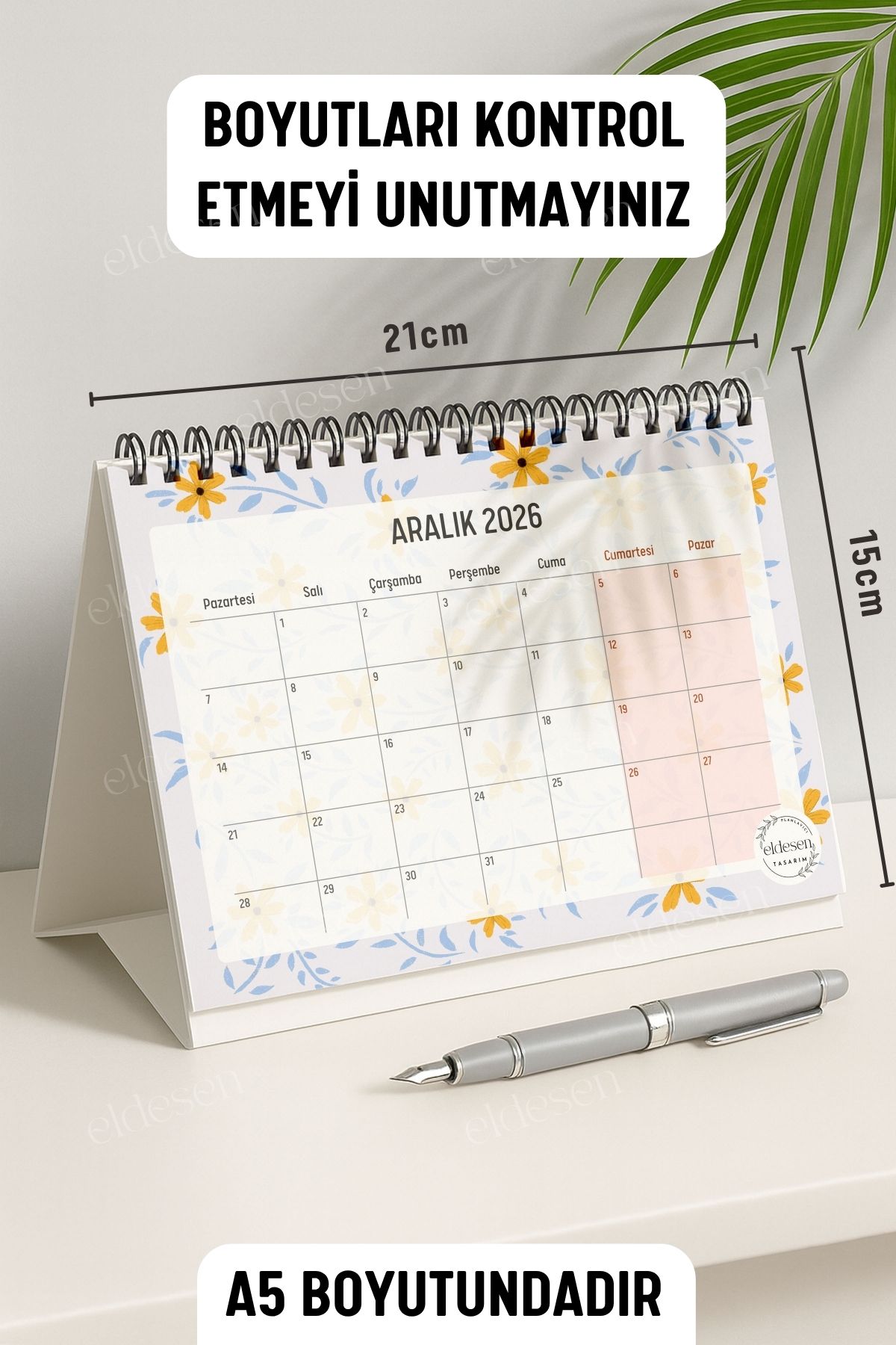 2026 yılı için özel olarak tasarlanmış, A5 boyutunda (21x16cm) büyük boy masa takvimi.