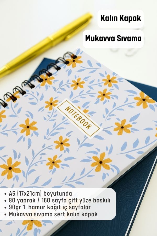 Sarı Papatyalı Kalın Kapaklı A5 Defter
