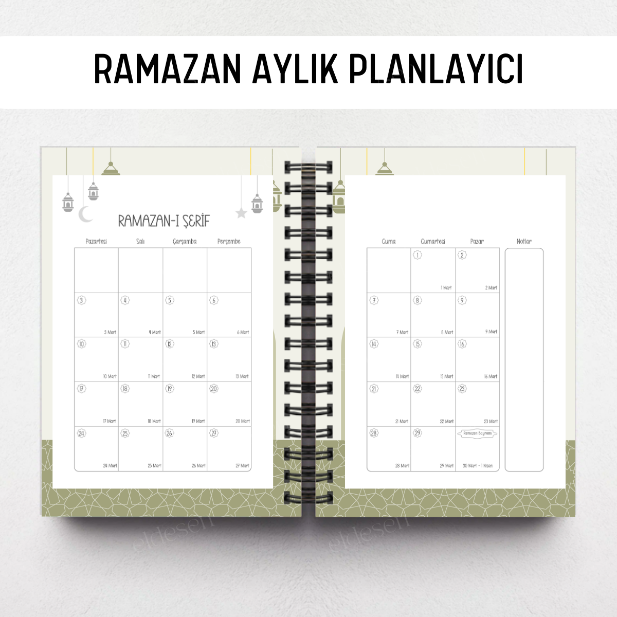 Razaman ayını planlama için 2 sayfalık aylık planlayıcı