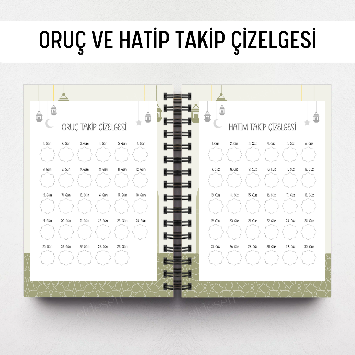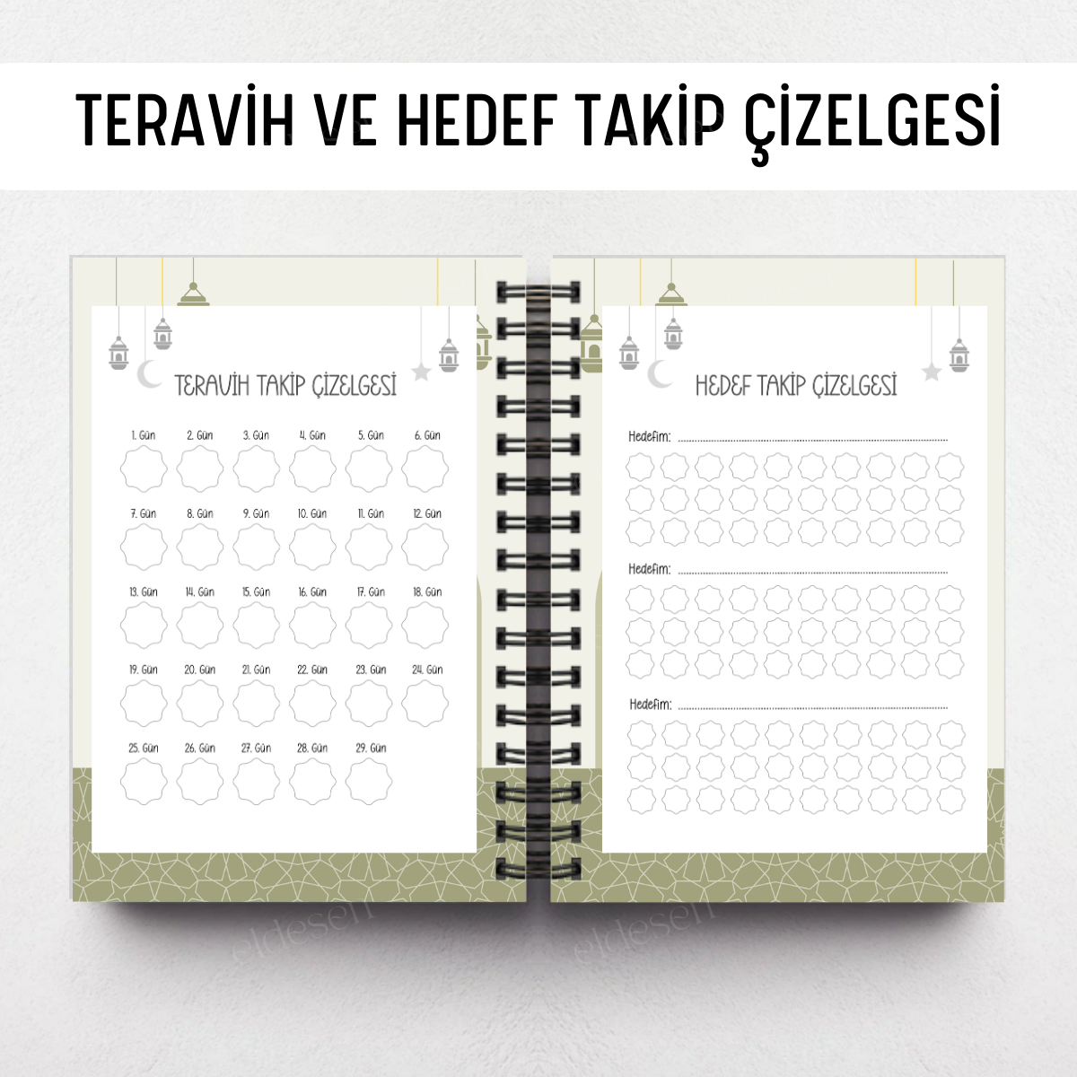 Yeşil Desenli Ramazan Ajandası, Oruç, Hatim, Teravih, Günlük ve Aylık Planlayıcı