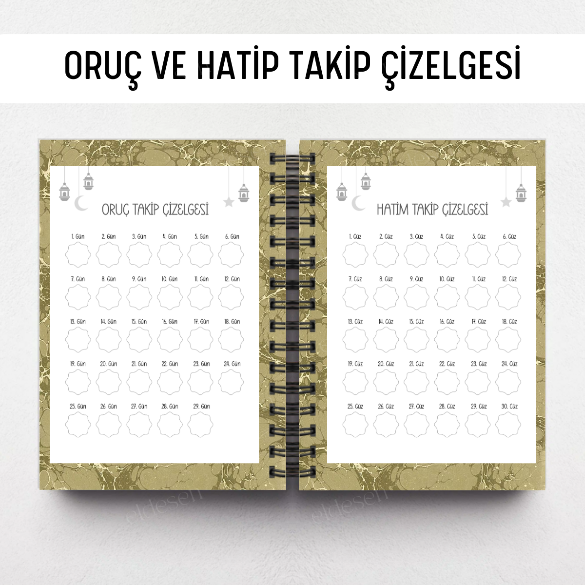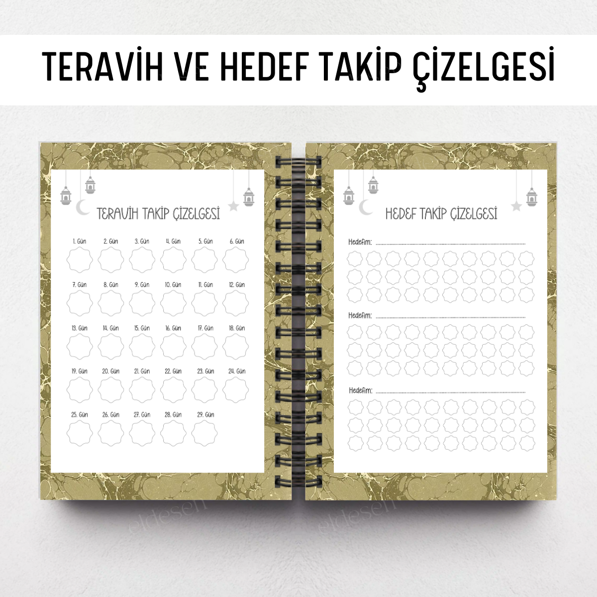 Yeşil Ebru Ramazan Ajandası, Oruç, Hatim, Teravih, Günlük ve Aylık Planlayıcı