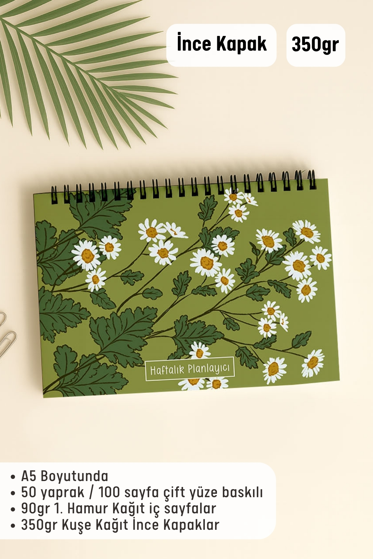 50 yaprak tek yönlü baskılıdır. 1 yıllık planlama için uygundur.